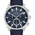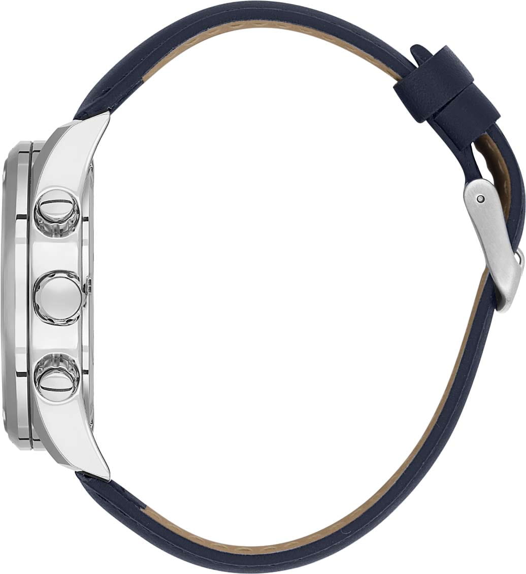Мужские кварцевые часы-хронограф Daniel Klein — это фирменный аксессуар для ценящих своё время. Корпус диаметром 43 мм выполнен из нержавеющей стали. Циферблат синего цвета оформлен штрихами, стрелками и тремя субциферблатами хронографа. Присутствуют индикаторы 24-часового формата времени. Окошко даты расположено между 4 и 5 часами. Стрелки и метки с люминесцентным покрытиемЛюминесцентное покрытиеПозволяет считывать показания времени в темноте. Производители наносят на стрелки, часовые индексы, безель или поверхность циферблата светонакопительный состав, дающий холодное свечение., обеспечивающим хорошую читаемость в темноте. Циферблат защищён минеральным стекломМинеральное стеклоМинеральное стекло представляет собой искусственно выращенный минерал кварца. Такое стекло отличается особой устойчивостью к повреждениям и царапинам. Уступает по некоторым качествам сапфировому стеклу.. Часы оснащены кожаным ремешком на классической пряжке. Водонепроницаемость 50 м позволяет использовать часы в повседневных условиях. Идеальный выбор для тех, кто ценит турецкое качество и универсальный дизайн.