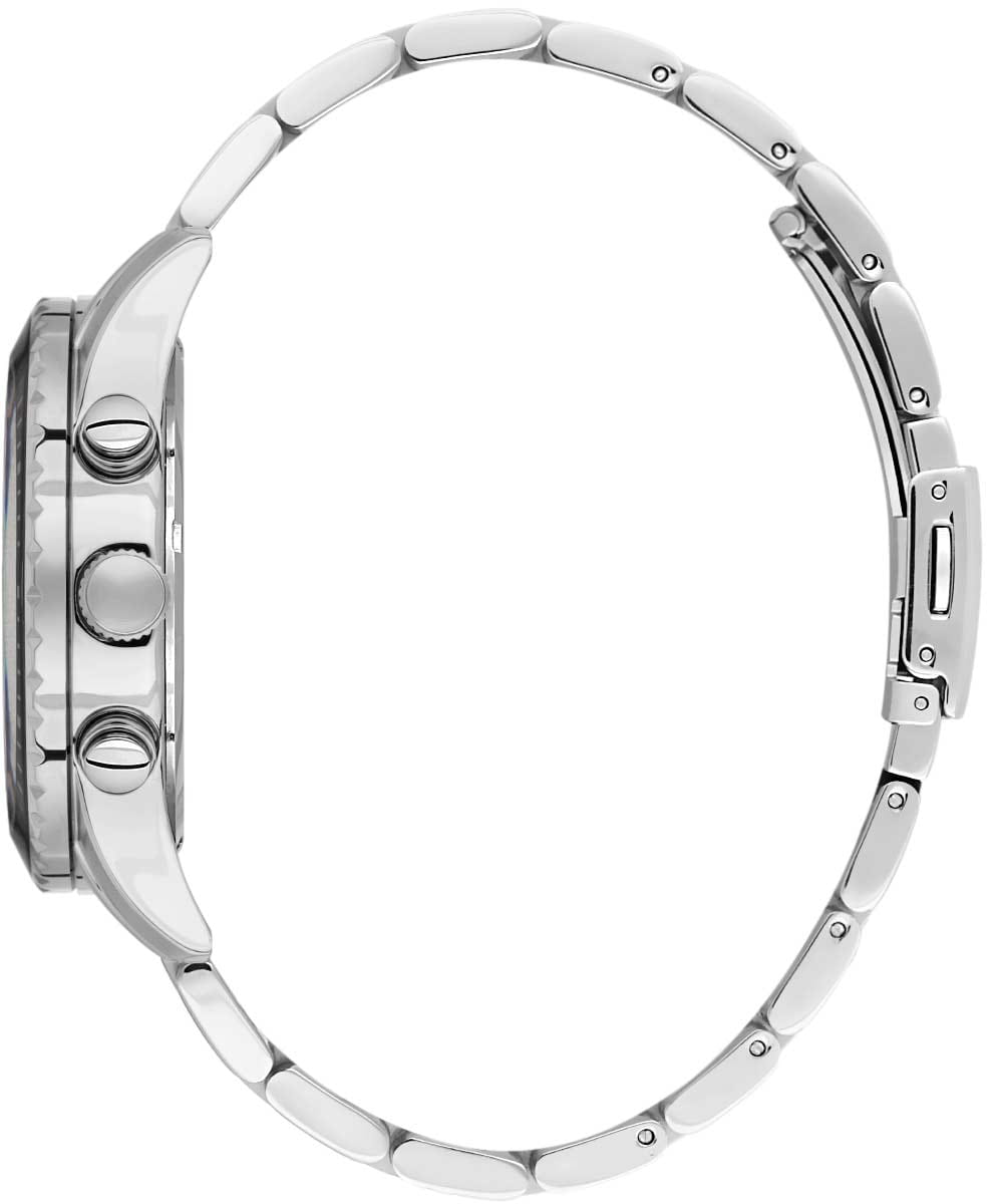 Мужские кварцевые часы Daniel Klein — это функциональный аксессуар, отражающий уверенность и чувство стиля. Корпус диаметром 44 мм выполнен из нержавеющей стали. БезельБезельВнешний ободок, закрепляющий стекло. В спортивных часах так называется поворотное кольцо с делениями на циферблате, выполняет роль таймера – замеряет отрезки времени на шкале. Неподвижный безель – элемент декора. Однонаправленно вращающийся безель на дайверских часах позволяет фиксировать моменты погружения и выныривания на поверхность. с IP-покрытиемIP-покрытиеМетод ионного напыления. Демонстрирует повышенную устойчивость к истиранию, окислению и химическим веществам. Под воздействием высокого давления и температуры около 1500°C молекулы металла надёжно соединяются с частицами корпуса часов.. Циферблат чёрного цвета выполнен по технологии Sunray («солнечные лучи») и оформлен точками, штрихами и стрелками. Присутствуют индикаторы 24-часового формата времени и второго часового пояса (GMTВторой часовой поясФункция, позволяющая отображать время двух часовых поясов одновременно.). Окошко даты расположено между 4 и 5 часами. Стрелки и метки с люминесцентным покрытиемЛюминесцентное покрытиеПозволяет считывать показания времени в темноте. Производители наносят на стрелки, часовые индексы, безель или поверхность циферблата светонакопительный состав, дающий холодное свечение., обеспечивающим хорошую читаемость в темноте. Циферблат защищён минеральным стекломМинеральное стеклоМинеральное стекло представляет собой искусственно выращенный минерал кварца. Такое стекло отличается особой устойчивостью к повреждениям и царапинам. Уступает по некоторым качествам сапфировому стеклу.. Часы оснащены стальным браслетом на раскладной застёжкеРаскладная застёжкаТакой тип застёжки используется только на браслетах из металла. Она никогда не раскрывается полностью, происходит разделение на 2 и более частей. Раскладывающая застёжка снизит вероятность потери часов к минимуму.. Водонепроницаемость 50 м позволяет использовать часы в повседневных условиях. Идеальный выбор для тех, кто ценит турецкое качество и универсальный дизайн.