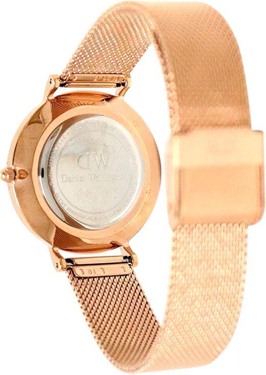 Женские наручные часы с круглым циферблатом Daniel Wellington Petite Melrose DW00100367, кварцевый механизм с высокой точностью. Класс водозащиты: 30 метров, позволит защитить корпус от случайных брызг или капель дождя. Корпус часов изготовлен из стали с PVD-покрытиемPVDУльтратонкое покрытие наносится в технике вакуумного напыления, сочетает в себе нитрид титана особой прочности со слоем золота или оксида хрома. Несёт в себе декоративную или защитную функцию.. Стальной браслет миланского плетения с PVD-покрытиемPVDУльтратонкое покрытие наносится в технике вакуумного напыления, сочетает в себе нитрид титана особой прочности со слоем золота или оксида хрома. Несёт в себе декоративную или защитную функцию. на раскладном замкеРаскладной замокДанный вариант застежки используется только на часах с металлическим браслетом. Отличительная особенность такого крепления в том, что длина браслета становится универсальной и вы можете самостоятельно отрегулировать нужный вам размер – застежка просто двигается по браслету часов..