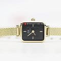 Женские наручные часы с минеральным стекломМинеральное стеклоМинеральное стекло представляет собой искусственно выращенный минерал кварца. Такое стекло отличается особой устойчивостью к повреждениям и царапинам. Уступает по некоторым качествам сапфировому стеклу. Daniel Wellington Quadro DW00100652, кварцевый механизм с высокой точностью. Корпус часов изготовлен из стали с PVD-покрытиемPVDУльтратонкое покрытие наносится в технике вакуумного напыления, сочетает в себе нитрид титана особой прочности со слоем золота или оксида хрома. Несёт в себе декоративную или защитную функцию.. Двухуровневый циферблат выполнен по технологии Sunray (солнечные лучи) и украшен фирменным логотипом Daniel Wellington. Накладные метки в виде штрихов. Рифленая заводная головка. Индивидуальный серийный номер. Класс водозащиты: 30 метров, позволит защитить корпус от случайных брызг или капель дождя. Стальной браслет миланского плетения с PVD-покрытиемPVDУльтратонкое покрытие наносится в технике вакуумного напыления, сочетает в себе нитрид титана особой прочности со слоем золота или оксида хрома. Несёт в себе декоративную или защитную функцию. на раскладном замкеРаскладной замокДанный вариант застежки используется только на часах с металлическим браслетом. Отличительная особенность такого крепления в том, что длина браслета становится универсальной и вы можете самостоятельно отрегулировать нужный вам размер – застежка просто двигается по браслету часов..