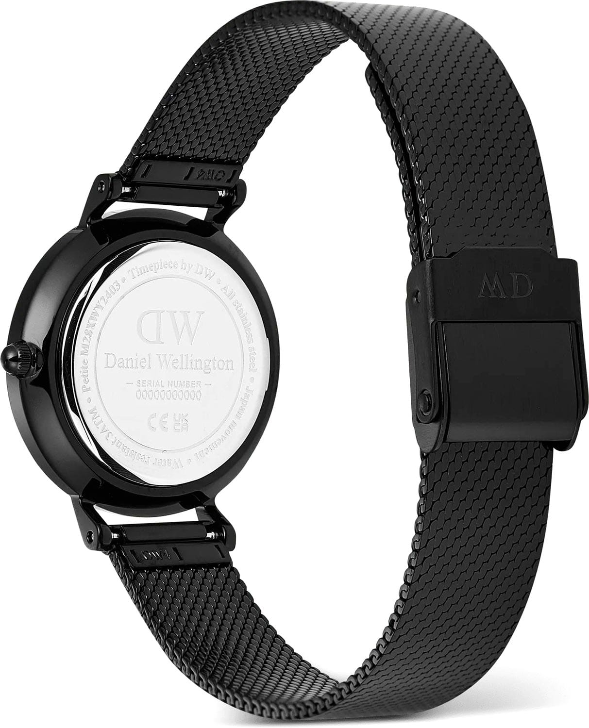 Daniel Wellington — женские часы, которые воплощают утончённый минимализм. Круглый корпус диаметром 28 мм выполнен из нержавеющей стали с глубоким чёрным PVDPVDУльтратонкое покрытие наносится в технике вакуумного напыления, сочетает в себе нитрид титана особой прочности со слоем золота или оксида хрома. Несёт в себе декоративную или защитную функцию.-покрытием, что придаёт образу современную строгость и элегантность.