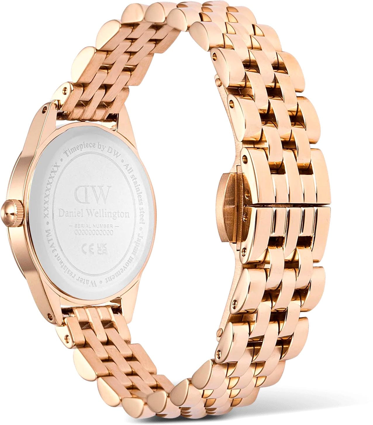 Daniel Wellington Ophelia — женственные часы с овальным корпусом 22 мм из нержавеющей стали с изящным PVDPVDУльтратонкое покрытие наносится в технике вакуумного напыления, сочетает в себе нитрид титана особой прочности со слоем золота или оксида хрома. Несёт в себе декоративную или защитную функцию.-покрытием в цвете розового золота. Глубокий циферблат с радиальным переливом украшен римскими индексами, что придаёт образу классическую элегантность.