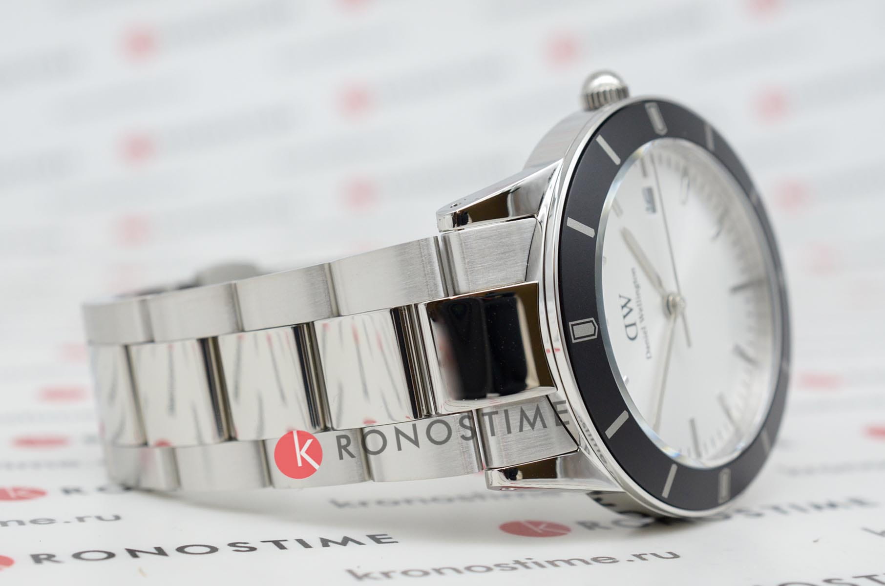 Daniel Wellington — мужские часы в современном спортивно-элегантном стиле. Круглый корпус диаметром 40 мм изготовлен из нержавеющей стали и дополнен чёрным безелемБезельВнешний ободок, закрепляющий стекло. В спортивных часах так называется поворотное кольцо с делениями на циферблате, выполняет роль таймера – замеряет отрезки времени на шкале. Неподвижный безель – элемент декора. Однонаправленно вращающийся безель на дайверских часах позволяет фиксировать моменты погружения и выныривания на поверхность. из анодированного алюминия, которое придаёт модели выразительный характер.