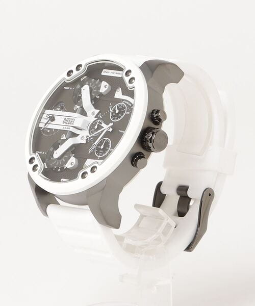Мужские американские часы-хронографХронографФункция позволяет измерять отрезки времени с особой точностью: часы, минуты, секунды. Верным признаком хронографа является наличие на циферблате 3 дополнительных окошек-счётчиков. с секундомеромСекундомерСекундоме́р — прибор, способный измерять интервалы времени с точностью до долей секунды. Diesel Mr Daddy 2.0 DZ7478, кварцевый механизм с высокой точностью. Класс водозащиты: 30 метров, позволит защитить корпус от случайных брызг или капель дождя. Корпус часов изготовлен из стали с IP-покрытиемIP-покрытиеМетод ионного напыления. Демонстрирует повышенную устойчивость к истиранию, окислению и химическим веществам. Под воздействием высокого давления и температуры около 1500°C молекулы металла надёжно соединяются с частицами корпуса часов.. Силиконовый ремешок на стандартной застёжке. БезельБезельВнешний ободок, закрепляющий стекло. В спортивных часах так называется поворотное кольцо с делениями на циферблате, выполняет роль таймера – замеряет отрезки времени на шкале. Неподвижный безель – элемент декора. Однонаправленно вращающийся безель на дайверских часах позволяет фиксировать моменты погружения и выныривания на поверхность. с IP-покрытиемIP-покрытиеМетод ионного напыления. Демонстрирует повышенную устойчивость к истиранию, окислению и химическим веществам. Под воздействием высокого давления и температуры около 1500°C молекулы металла надёжно соединяются с частицами корпуса часов.. 12-ти и 24-х часовой формат времени. Счетчики на 60 секунд и 30 минут. Окошко даты. Четыре часовых пояса. Четыре механизма, на двух из которых указатели часов и минут в виде вращающихся дисков, на третьем - указатель секунд. Завинчивающаяся задняя крышка.