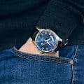 Мужские механические часы с автоподзаводом Epos из коллекции Passion — это сочетание швейцарского мастерства и современного дизайна. Корпус диаметром 43 мм выполнен из нержавеющей стали 316L. Циферблат синего цвета оформлен сатинированным узором «Солнечные лучи» и дополнен окошками даты и дня недели. Циферблат защищён сапфировым стекломСапфировое стеклоПрочный и надёжный материал из кристалла сапфира синтетического происхождения, характеризующийся особой твёрдостью и устойчивостью к царапинам и повреждениям.. Стрелки с люминесцентным покрытиемЛюминесцентное покрытиеПозволяет считывать показания времени в темноте. Производители наносят на стрелки, часовые индексы, безель или поверхность циферблата светонакопительный состав, дающий холодное свечение., обеспечивающим хорошую читаемость в темноте. Механизм — швейцарский калибр ETA 2834 с запасом хода 38 часов. Прозрачная задняя крышка позволяет наблюдать за работой механизма. Часы оснащены кожаным ремешком чёрного цвета со стандартной застёжкой. Водонепроницаемость 100 м позволяет использовать часы для плавания. Гарантия — 24 месяца. Универсальный выбор для ценителя классики и точного механизма.