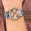 Яркий стиль и функциональность этих часов придутся по душе активной девушке. Кварцевый механизм с высокой точностью. Минеральное стеклоМинеральное стеклоМинеральное стекло представляет собой искусственно выращенный минерал кварца. Такое стекло отличается особой устойчивостью к повреждениям и царапинам. Уступает по некоторым качествам сапфировому стеклу. устойчивое к появлению царапин, обладающее высокой прозрачностью. Класс водозащиты: 50 метров, позволит защитить корпус от случайных брызг или капель дождя. Корпус часов изготовлен из нержавеющей стали 316L. БезельБезельВнешний ободок, закрепляющий стекло. В спортивных часах так называется поворотное кольцо с делениями на циферблате, выполняет роль таймера – замеряет отрезки времени на шкале. Неподвижный безель – элемент декора. Однонаправленно вращающийся безель на дайверских часах позволяет фиксировать моменты погружения и выныривания на поверхность. украшен фианитами. Браслет с раскладной застёжкойРаскладная застёжкаТакой тип застёжки используется только на браслетах из металла. Она никогда не раскрывается полностью, происходит разделение на 2 и более частей. Раскладывающая застёжка снизит вероятность потери часов к минимуму..