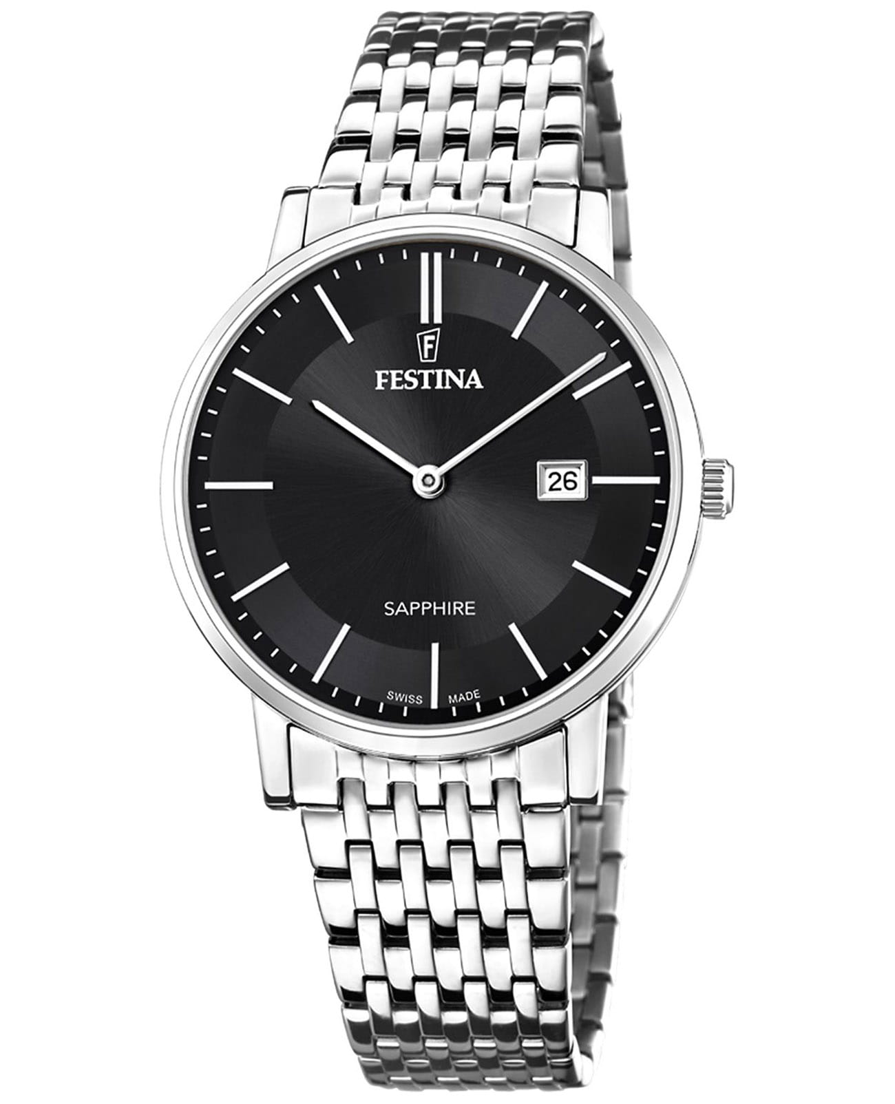 Мужские кварцевые часы с окошком даты Festina Classic F20018/3, кварцевый механизм с высокой точностью. Сапфировое стеклоСапфировое стеклоПрочный и надёжный материал из кристалла сапфира синтетического происхождения, характеризующийся особой твёрдостью и устойчивостью к царапинам и повреждениям. устойчивое к появлению царапин, обладающее высокой прозрачностью. Класс водозащиты: 50 метров, позволит защитить корпус от случайных брызг или капель дождя. Корпус часов изготовлен из стали. Стальной браслет на раскладной застёжкеРаскладная застёжкаТакой тип застёжки используется только на браслетах из металла. Она никогда не раскрывается полностью, происходит разделение на 2 и более частей. Раскладывающая застёжка снизит вероятность потери часов к минимуму.. Циферблат выполнен по технологии Sunray (солнечные лучи). Метки в виде штрихов. Две стрелки. Окошко даты.