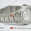 Кварцевый механизм с высокой точностью. Минеральное стеклоМинеральное стеклоМинеральное стекло представляет собой искусственно выращенный минерал кварца. Такое стекло отличается особой устойчивостью к повреждениям и царапинам. Уступает по некоторым качествам сапфировому стеклу. устойчивое к появлению царапин, обладающее высокой прозрачностью. Стрелки с люминесцентным покрытиемЛюминесцентное покрытиеПозволяет считывать показания времени в темноте. Производители наносят на стрелки, часовые индексы, безель или поверхность циферблата светонакопительный состав, дающий холодное свечение.. Циферблат инкрустирован кристаллами. Окошко даты с увеличительным стеклом. Класс водозащиты: 100 метров, позволит плавать, нырять и заниматься другими водными видами спорта. Поворотный безельБезельВнешний ободок, закрепляющий стекло. В спортивных часах так называется поворотное кольцо с делениями на циферблате, выполняет роль таймера – замеряет отрезки времени на шкале. Неподвижный безель – элемент декора. Однонаправленно вращающийся безель на дайверских часах позволяет фиксировать моменты погружения и выныривания на поверхность.. Корпус часов изготовлен из нержавеющей стали. Браслет с раскладной застёжкойРаскладная застёжкаТакой тип застёжки используется только на браслетах из металла. Она никогда не раскрывается полностью, происходит разделение на 2 и более частей. Раскладывающая застёжка снизит вероятность потери часов к минимуму.. Застежка с системой блокировки.