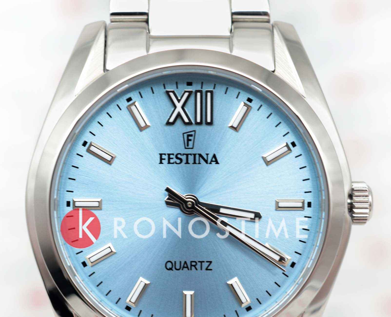 Наручные женские часы Festina Alegria F20622/3 с минеральным стекломМинеральное стеклоМинеральное стекло представляет собой искусственно выращенный минерал кварца. Такое стекло отличается особой устойчивостью к повреждениям и царапинам. Уступает по некоторым качествам сапфировому стеклу., кварцевый механизм с высокой точностью. "" устойчивое к потертостям. Класс водозащиты: 50 метров, позволит защитить корпус от случайных брызг или капель дождя. Корпус и браслет часов изготовлены из стали,серебристого цвета. Браслет на раскладной застёжкеРаскладная застёжкаТакой тип застёжки используется только на браслетах из металла. Она никогда не раскрывается полностью, происходит разделение на 2 и более частей. Раскладывающая застёжка снизит вероятность потери часов к минимуму..