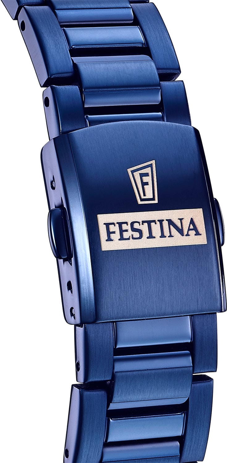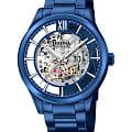 Мужские механические часы-скелетоны Festina Automatic F20631/1, механический механизм (автоматический калибр) с высокой точностью. Сапфировое стеклоСапфировое стеклоПрочный и надёжный материал из кристалла сапфира синтетического происхождения, характеризующийся особой твёрдостью и устойчивостью к царапинам и повреждениям. устойчивое к появлению царапин, обладающее высокой прозрачностью. Класс водозащиты: 50 метров, позволит защитить корпус от случайных брызг или капель дождя. Корпус часов изготовлен из стали с PVD-покрытиемPVDУльтратонкое покрытие наносится в технике вакуумного напыления, сочетает в себе нитрид титана особой прочности со слоем золота или оксида хрома. Несёт в себе декоративную или защитную функцию.. Стальной браслет на раскладной застёжкеРаскладная застёжкаТакой тип застёжки используется только на браслетах из металла. Она никогда не раскрывается полностью, происходит разделение на 2 и более частей. Раскладывающая застёжка снизит вероятность потери часов к минимуму. с PVD-покрытиемPVDУльтратонкое покрытие наносится в технике вакуумного напыления, сочетает в себе нитрид титана особой прочности со слоем золота или оксида хрома. Несёт в себе декоративную или защитную функцию.. Циферблат с метками в виде штрихов и римской цифры 12. Рифленая заводная головка. Стрелки и метки с люминесцентным покрытиемЛюминесцентное покрытиеПозволяет считывать показания времени в темноте. Производители наносят на стрелки, часовые индексы, безель или поверхность циферблата светонакопительный состав, дающий холодное свечение..