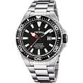 Мужские часы Festina The originals F20663/3, кварцевый механизм с высокой точностью. Сапфировое стеклоСапфировое стеклоПрочный и надёжный материал из кристалла сапфира синтетического происхождения, характеризующийся особой твёрдостью и устойчивостью к царапинам и повреждениям. устойчивое к появлению царапин, обладающее высокой прозрачностью. Класс водозащиты: 200 метров, позволит плавать, нырять и заниматься другими водными видами спорта. Корпус часов изготовлен из нержавеющей стали. Стальной браслет на раскладной застёжкеРаскладная застёжкаТакой тип застёжки используется только на браслетах из металла. Она никогда не раскрывается полностью, происходит разделение на 2 и более частей. Раскладывающая застёжка снизит вероятность потери часов к минимуму.. Окошко даты находится в положении 3 часа. Вращающийся стальной безельБезельВнешний ободок, закрепляющий стекло. В спортивных часах так называется поворотное кольцо с делениями на циферблате, выполняет роль таймера – замеряет отрезки времени на шкале. Неподвижный безель – элемент декора. Однонаправленно вращающийся безель на дайверских часах позволяет фиксировать моменты погружения и выныривания на поверхность. с IP-покрытиемIP-покрытиеМетод ионного напыления. Демонстрирует повышенную устойчивость к истиранию, окислению и химическим веществам. Под воздействием высокого давления и температуры около 1500°C молекулы металла надёжно соединяются с частицами корпуса часов.. Стрелки и метки с люминесцентным покрытиемЛюминесцентное покрытиеПозволяет считывать показания времени в темноте. Производители наносят на стрелки, часовые индексы, безель или поверхность циферблата светонакопительный состав, дающий холодное свечение..