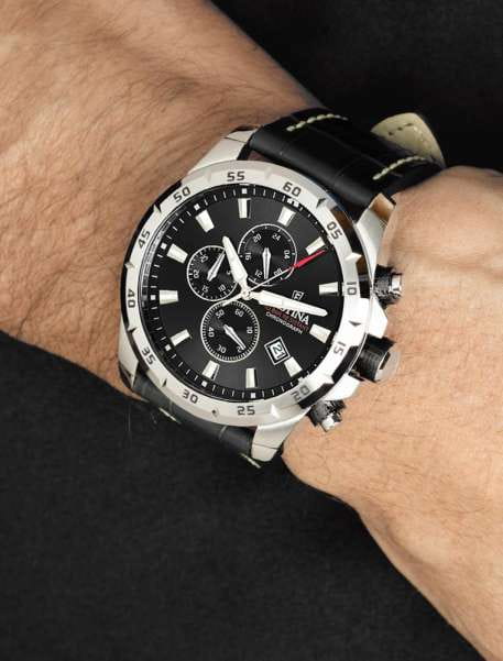 Часы Festina Timeless Chrono F20692/4 представляют собой сочетание изысканного дизайна и современных технологий, создающих идеальный аксессуар для тех, кто ценит стиль и функциональность. Эти часы оснащены надежным кварцевым механизмом, который обеспечивает безупречную точность хода, а наличие хронографаХронографФункция позволяет измерять отрезки времени с особой точностью: часы, минуты, секунды. Верным признаком хронографа является наличие на циферблате 3 дополнительных окошек-счётчиков. с секундомеромСекундомерСекундоме́р — прибор, способный измерять интервалы времени с точностью до долей секунды. позволяет измерять промежутки времени с высочайшей точностью, что делает их неотъемлемым атрибутом для активных и целеустремленных людей. Благодаря классу водозащиты до 100 метров, эти часы станут вашим надежным спутником в водных приключениях, позволяя вам свободно плавать, нырять и заниматься другими водными видами спорта. Корпус часов изготовлен из прочной нержавеющей стали диаметром 45 мм, что обеспечивает не только долговечность, но и элегантность внешнего вида. Окошко даты, расположенное на отметке «4 часа», поможет вам всегда оставаться в курсе текущих дел. Минеральное стеклоМинеральное стеклоМинеральное стекло представляет собой искусственно выращенный минерал кварца. Такое стекло отличается особой устойчивостью к повреждениям и царапинам. Уступает по некоторым качествам сапфировому стеклу., используемое в конструкции этих часов, отличается повышенной устойчивостью к царапинам и превосходной прозрачностью, гарантируя, что циферблат всегда останется чистым и легко читаемым. Кожаный ремешок на стандартной застёжке обеспечивает комфортное ношение.