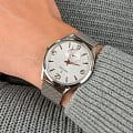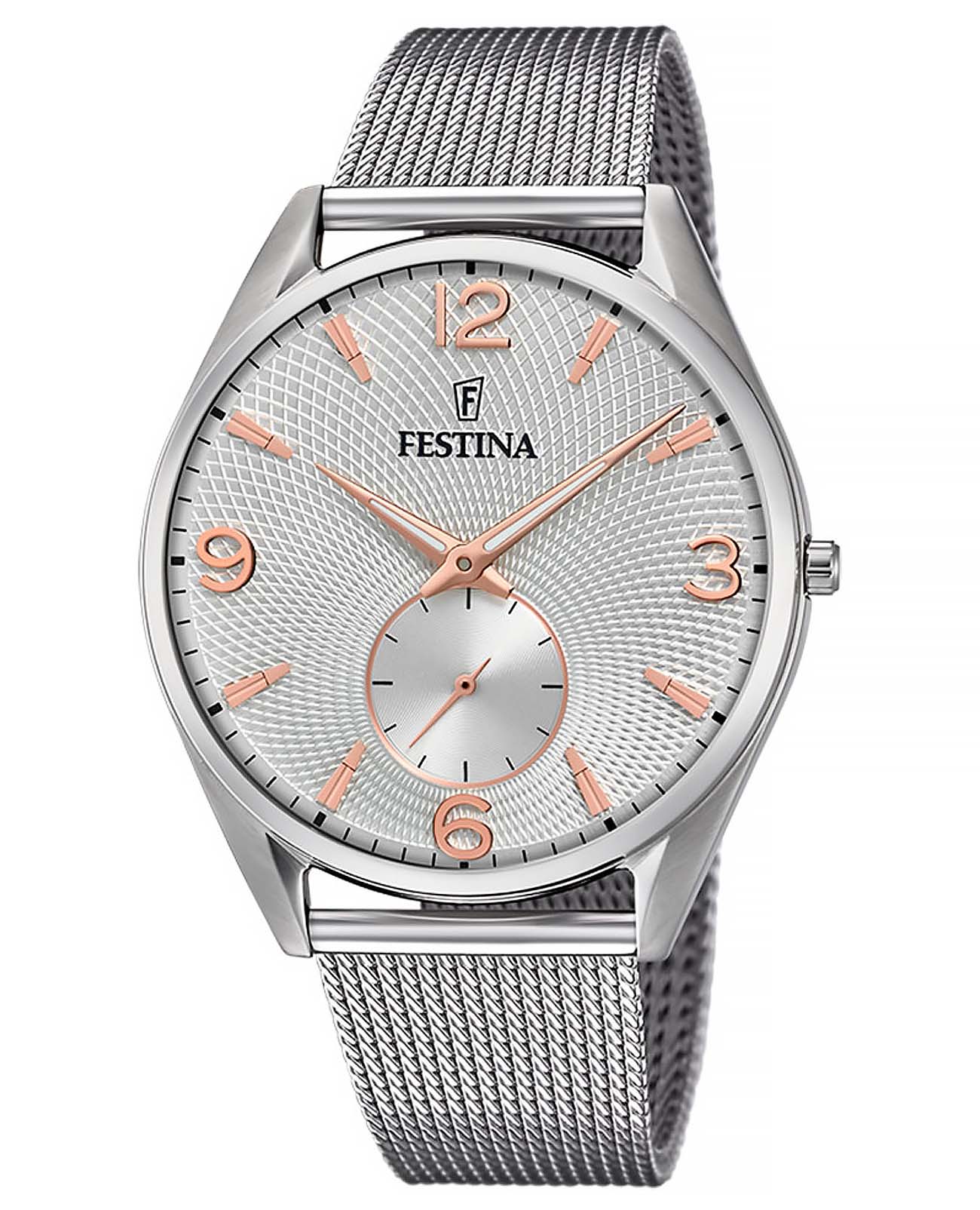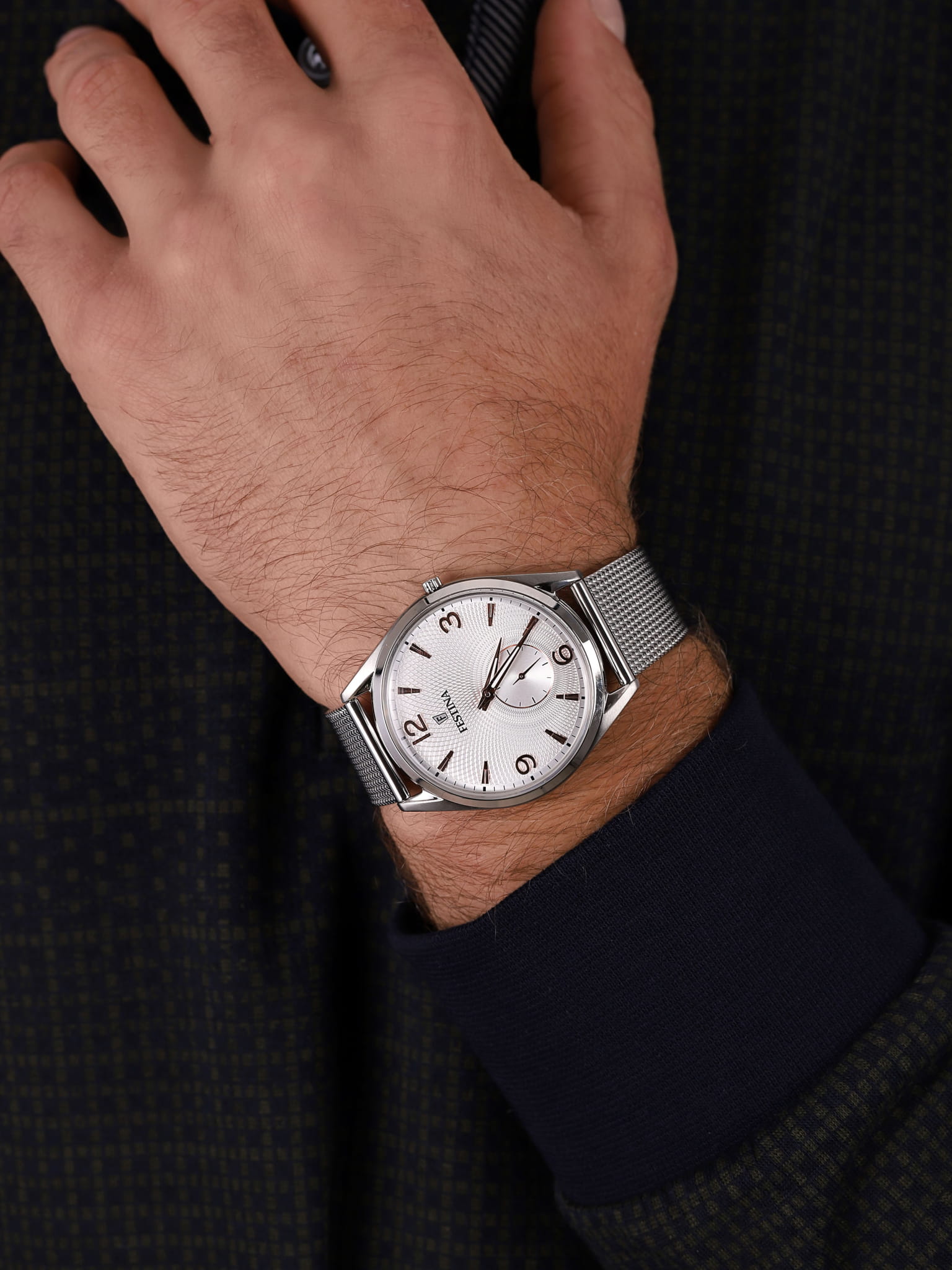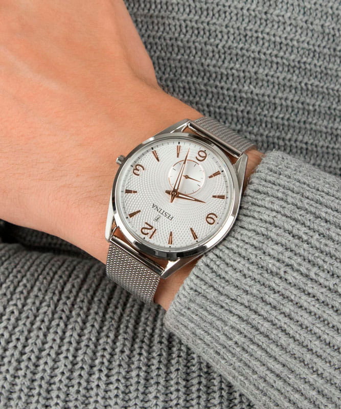 Яркий стиль и функциональность этих часов придутся по душе каждому. циферблат защищен минеральным стекломМинеральное стеклоМинеральное стекло представляет собой искусственно выращенный минерал кварца. Такое стекло отличается особой устойчивостью к повреждениям и царапинам. Уступает по некоторым качествам сапфировому стеклу.. Кварцевый механизм с высокой точностью. Метки украшены кристаллами. Класс водозащиты: 30 метров, позволит защитить корпус от капель дождя. Корпус часов изготовлен из нержавеющей стали. Циферблат с люминесцентным покрытиемЛюминесцентное покрытиеПозволяет считывать показания времени в темноте. Производители наносят на стрелки, часовые индексы, безель или поверхность циферблата светонакопительный состав, дающий холодное свечение. стрелок. Удобный и надежный стальной браслет миланского плетения с регулируемой застежкой.