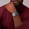 Мужские наручные часы с надёжным кварцевым механизмом Fossil Blue FS6038. Корпус и браслет часов изготовлены из нержавеющей стали. Вращающийся безельБезельВнешний ободок, закрепляющий стекло. В спортивных часах так называется поворотное кольцо с делениями на циферблате, выполняет роль таймера – замеряет отрезки времени на шкале. Неподвижный безель – элемент декора. Однонаправленно вращающийся безель на дайверских часах позволяет фиксировать моменты погружения и выныривания на поверхность. с IP-покрытиемIP-покрытиеМетод ионного напыления. Демонстрирует повышенную устойчивость к истиранию, окислению и химическим веществам. Под воздействием высокого давления и температуры около 1500°C молекулы металла надёжно соединяются с частицами корпуса часов.. Окошко даты находится в положении 3 часа. Стрелки и метки с люминесцентным покрытиемЛюминесцентное покрытиеПозволяет считывать показания времени в темноте. Производители наносят на стрелки, часовые индексы, безель или поверхность циферблата светонакопительный состав, дающий холодное свечение.. Класс водозащиты: 100 метров, позволит плавать, нырять и заниматься другими водными видами спорта. Стальной браслет на раскладной застёжкеРаскладная застёжкаТакой тип застёжки используется только на браслетах из металла. Она никогда не раскрывается полностью, происходит разделение на 2 и более частей. Раскладывающая застёжка снизит вероятность потери часов к минимуму..