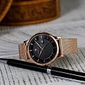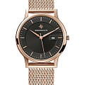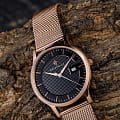 Мужские английские часы с минеральным стекломМинеральное стеклоМинеральное стекло представляет собой искусственно выращенный минерал кварца. Такое стекло отличается особой устойчивостью к повреждениям и царапинам. Уступает по некоторым качествам сапфировому стеклу. Greenwich Breeze GW 031.40.31, кварцевый механизм с высокой точностью. Класс водозащиты: 50 метров, позволит защитить корпус от случайных брызг или капель дождя. Корпус часов изготовлен из стали с IP-покрытиемIP-покрытиеМетод ионного напыления. Демонстрирует повышенную устойчивость к истиранию, окислению и химическим веществам. Под воздействием высокого давления и температуры около 1500°C молекулы металла надёжно соединяются с частицами корпуса часов. цвета розовое золото. Браслет с раскладной застёжкойРаскладная застёжкаТакой тип застёжки используется только на браслетах из металла. Она никогда не раскрывается полностью, происходит разделение на 2 и более частей. Раскладывающая застёжка снизит вероятность потери часов к минимуму..