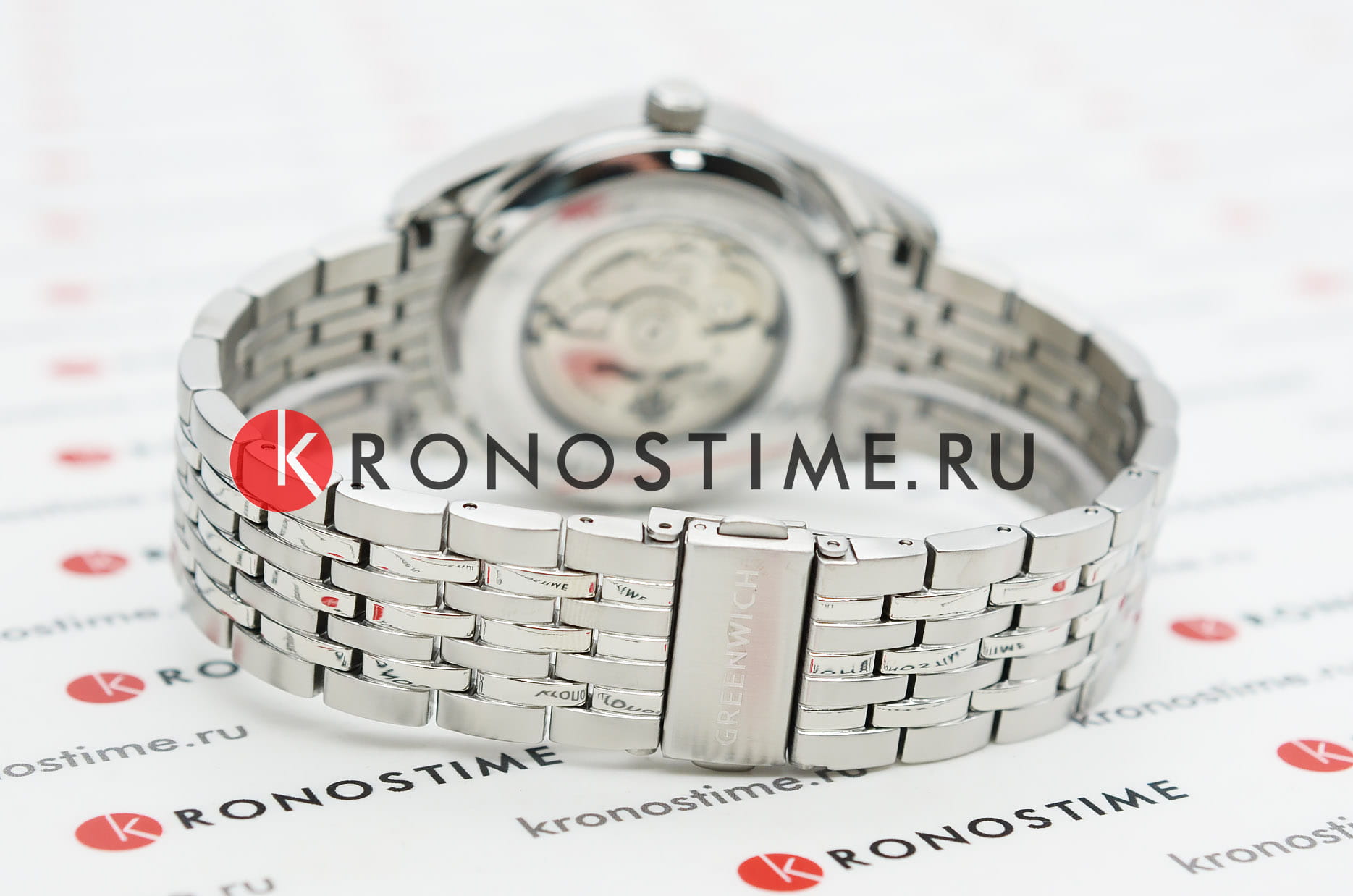 Мужские часы с минеральным стекломМинеральное стеклоМинеральное стекло представляет собой искусственно выращенный минерал кварца. Такое стекло отличается особой устойчивостью к повреждениям и царапинам. Уступает по некоторым качествам сапфировому стеклу. Greenwich Good Luck Classic GW 074.10.31, представляют собой классический вариант для повседневной носки. В центральной части циферблата — отличительная черта моделей этой серии: гильоше, объемные линии которого напоминают волны. Обратите внимание на форму пластины, где крепятся накладные риски: она сделана в форме латинской буквы G, первой буквы в названии бренда. Часы характеризуются традиционными формами, лаконичным исполнением, что делает модель элегантным дополнением к деловому костюму. Сквозь прозрачную заднюю крышку вы увидите детали механизма TMI с декорированным ротором: на нем выгравировано изображение символа английских моряков — парусника. Браслет и застежка-клипса выполнены из гипоаллергенной нержавеющей стали. Дизайн, актуальный для любого современного образа, и надежность используемых материалов делают автоматические часы Greenwich удобным и стильным аксессуаром на каждый день.