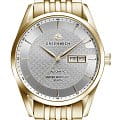 Мужские часы с минеральным стекломМинеральное стеклоМинеральное стекло представляет собой искусственно выращенный минерал кварца. Такое стекло отличается особой устойчивостью к повреждениям и царапинам. Уступает по некоторым качествам сапфировому стеклу. Greenwich Good Luck Classic GW 074.20.33, представляют собой классический вариант для повседневной носки. В центральной части циферблата — отличительная черта моделей этой серии: гильоше, объемные линии которого напоминают волны. Обратите внимание на форму пластины, где крепятся накладные риски: она сделана в форме латинской буквы G, первой буквы в названии бренда. Часы характеризуются традиционными формами, лаконичным исполнением, что делает модель элегантным дополнением к деловому костюму. Сквозь прозрачную заднюю крышку вы увидите детали механизма TMI с декорированным ротором: на нем выгравировано изображение символа английских моряков — парусника. Браслет и раскладная застёжкаРаскладная застёжкаТакой тип застёжки используется только на браслетах из металла. Она никогда не раскрывается полностью, происходит разделение на 2 и более частей. Раскладывающая застёжка снизит вероятность потери часов к минимуму. выполнены из гипоаллергенной нержавеющей стали с PVD-покрытиемPVDУльтратонкое покрытие наносится в технике вакуумного напыления, сочетает в себе нитрид титана особой прочности со слоем золота или оксида хрома. Несёт в себе декоративную или защитную функцию.. Дизайн, актуальный для любого современного образа, и надежность используемых материалов делают автоматические часы Greenwich удобным и стильным аксессуаром на каждый день. Окошко даты и дня недели находится в положении 3 часа. Класс водозащиты: 100 метров, позволит плавать, нырять и заниматься другими водными видами спорта.