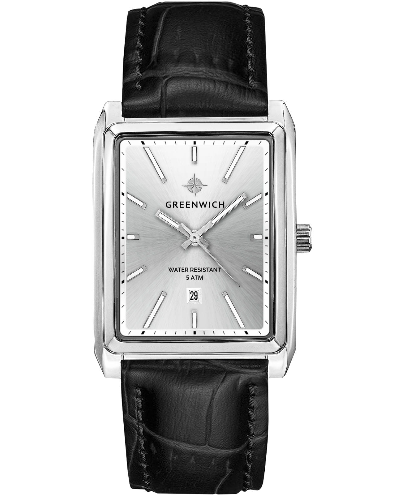 Часы серии Galeon – находка для тех, кто предпочитает классический стиль, актуальный вне зависимости от капризов моды. Минеральное стеклоМинеральное стеклоМинеральное стекло представляет собой искусственно выращенный минерал кварца. Такое стекло отличается особой устойчивостью к повреждениям и царапинам. Уступает по некоторым качествам сапфировому стеклу.. Кварцевый механизм Miyota отсчитывает часы, минуты и секунды, в позиции «6 часов» расположено окошко даты. На циферблате серебристого цвета с полировкой в виде солнечных лучей хорошо читаются крупные риски и стрелки с люминесцентным покрытиемЛюминесцентное покрытиеПозволяет считывать показания времени в темноте. Производители наносят на стрелки, часовые индексы, безель или поверхность циферблата светонакопительный состав, дающий холодное свечение.. Корпус из нержавеющей стали имеет эргономичную форму, которая позволяет часам удобно ложиться на запястье. Черный ремешок из натуральной кожи дополнен прошивкой, что продлевает срок его службы.