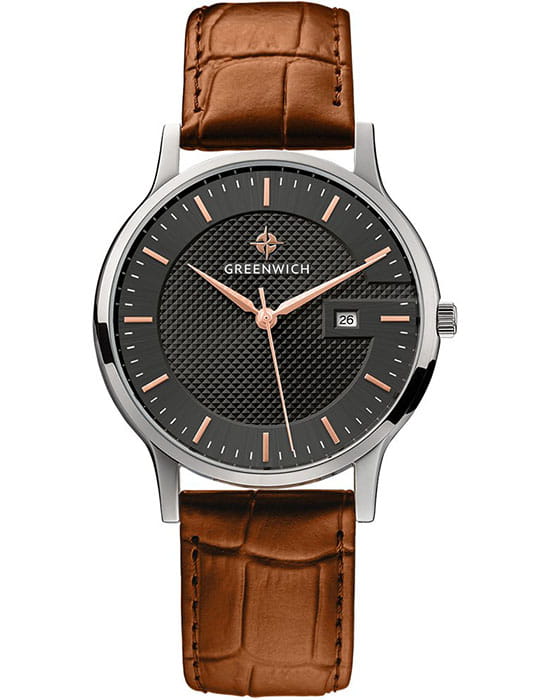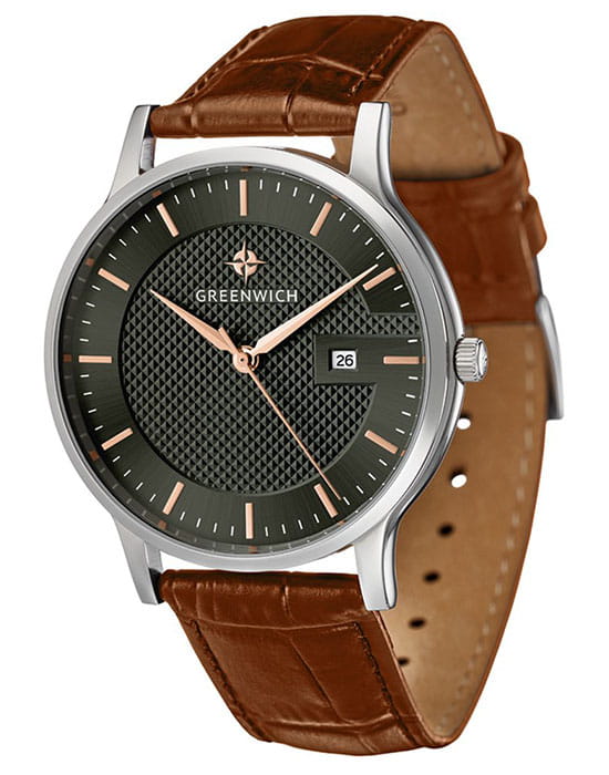 Мужские наручные часы Greenwich GW 031.12.34 представляют собой классический вариант для повседневной носки. Циферблат украшается брендовым логотипом, изображающим Розу Ветров. Эмблема мореплавательского духа символизирует удачу, стремление достигнуть поставленной цели. Часы характеризуются традиционными формами, лаконичным исполнением, что делает модель элегантным дополнением к деловому костюму. Надёжный корпус из нержавеющей стали спасает японский механизм от повреждений и ударов. Минеральное стекло отличается устойчивостью к образованию царапин на поверхности.