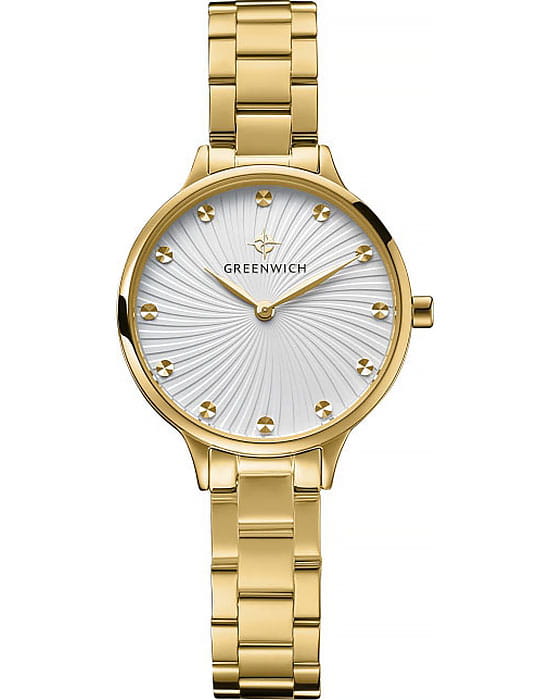 Женские наручные часы Greenwich GW 321.20.33 помогут дополнить образ элегантной особы, модель в лаконичном исполнении подойдёт для повседневной носки. Классический стиль перекликается с дизайнерскими решениями, позволяя экспериментировать с одеждой. Минималистичный циферблат украшен эмблемой в виде Розы Ветров, являющейся символом удачи и поддержки во всех начинаниях. Часы имеют прочный корпус из стали 316L, характеризующейся устойчивостью к коррозии. Высокая точность хода обеспечивается за счёт работы японского механизма. Минеральное стекло препятствует появлению царапин.