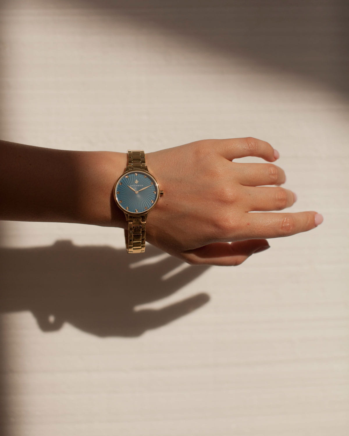 Женские наручные часы Greenwich GW 321.20.38 помогут дополнить образ элегантной особы, модель в лаконичном исполнении подойдёт для повседневной носки. Классический стиль перекликается с дизайнерскими решениями, позволяя экспериментировать с одеждой. Минималистичный циферблат украшен эмблемой в виде Розы Ветров, являющейся символом удачи и поддержки во всех начинаниях. Часы имеют прочный корпус и браслет из стали 316L, характеризующейся устойчивостью к коррозии, с с IP-покрытиемIP-покрытиеМетод ионного напыления. Демонстрирует повышенную устойчивость к истиранию, окислению и химическим веществам. Под воздействием высокого давления и температуры около 1500°C молекулы металла надёжно соединяются с частицами корпуса часов. цвета желтое золото. Высокая точность хода обеспечивается за счёт работы японского механизма. минеральное стеклоМинеральное стеклоМинеральное стекло представляет собой искусственно выращенный минерал кварца. Такое стекло отличается особой устойчивостью к повреждениям и царапинам. Уступает по некоторым качествам сапфировому стеклу. препятствует появлению царапин. Браслет с раскладывающейся застёжкойРаскладная застёжкаТакой тип застёжки используется только на браслетах из металла. Она никогда не раскрывается полностью, происходит разделение на 2 и более частей. Раскладывающая застёжка снизит вероятность потери часов к минимуму..