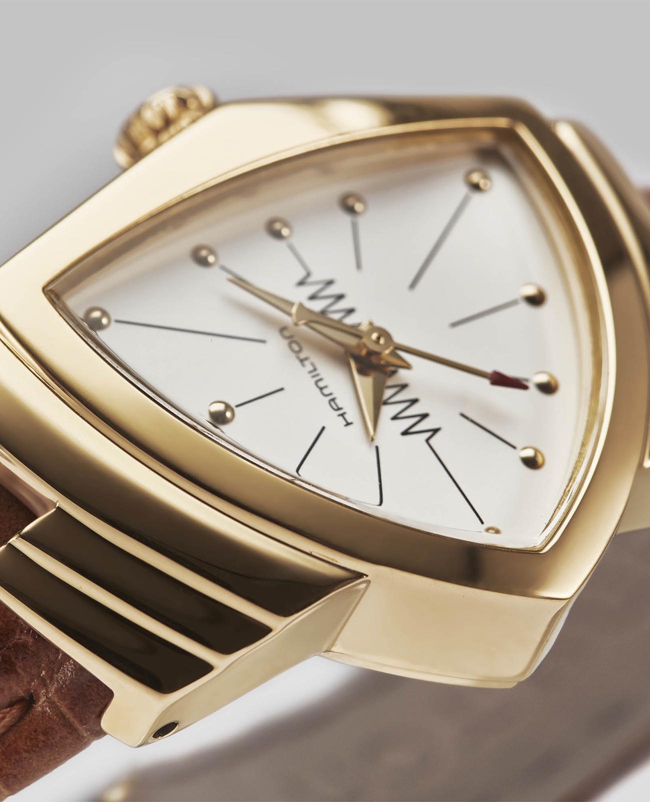 Женские наручные часы Hamilton Ventura Quartz H24101511 с надёжным кварцевым механизмом. Корпус часов изготовлен из нержавеющей стали с PVD-покрытиемPVDУльтратонкое покрытие наносится в технике вакуумного напыления, сочетает в себе нитрид титана особой прочности со слоем золота или оксида хрома. Несёт в себе декоративную или защитную функцию.. Практичный кожаный ремешок на застёжке "Бабочка". Минеральное стеклоМинеральное стеклоМинеральное стекло представляет собой искусственно выращенный минерал кварца. Такое стекло отличается особой устойчивостью к повреждениям и царапинам. Уступает по некоторым качествам сапфировому стеклу. устойчивое к мелким механическим повреждениям. Класс водозащиты: 50 метров, позволит защитить корпус от случайных брызг или капель дождя.