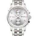 Мужские наручные часы-хронографХронографФункция позволяет измерять отрезки времени с особой точностью: часы, минуты, секунды. Верным признаком хронографа является наличие на циферблате 3 дополнительных окошек-счётчиков. Hamilton Jazzmaster Maestro Auto Chrono H32576155 с автоматическим механизмом. Корпус выполнен из нержавеющей стали. Сапфировое стеклоСапфировое стеклоПрочный и надёжный материал из кристалла сапфира синтетического происхождения, характеризующийся особой твёрдостью и устойчивостью к царапинам и повреждениям. устойчивое к мелким механическим повреждениям. Стальной браслет на застёжке-бабочке с кнопкамиЗастёжка "бабочка"Такой вид застёжки дополняется предохранителями, помогающими избежать случайного раскрытия браслета. Обладают изящным исполнением. . Стрелки и метки с люминесцентным покрытиемЛюминесцентное покрытиеПозволяет считывать показания времени в темноте. Производители наносят на стрелки, часовые индексы, безель или поверхность циферблата светонакопительный состав, дающий холодное свечение.. Окошки дня недели и даты находятся в положении 3 часа. Класс водозащиты: 100 метров, позволит плавать, нырять и заниматься другими водными видами спорта.