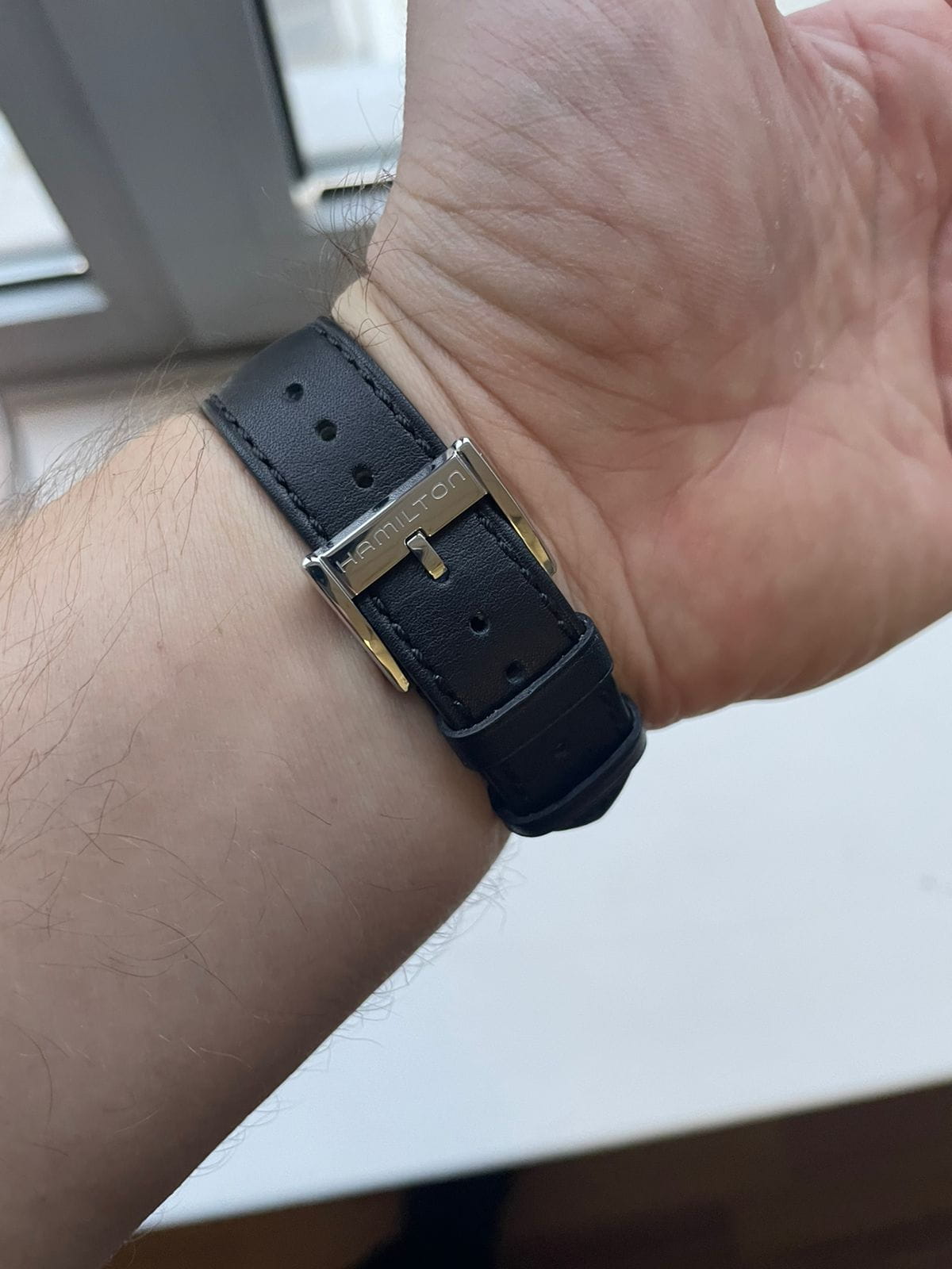 Мужские механические швейцарские часы Hamilton American Classic Intra-Matic Auto H38425720, автоматический механизм с высокой точностью. Сапфировое стеклоСапфировое стеклоПрочный и надёжный материал из кристалла сапфира синтетического происхождения, характеризующийся особой твёрдостью и устойчивостью к царапинам и повреждениям. устойчивое к появлению царапин, обладающее высокой прозрачностью. Класс водозащиты: 50 метров, позволит защитить корпус от случайных брызг или капель дождя. Корпус часов изготовлен из нержавеющей стали. Стрелки с люминесцентным покрытиемЛюминесцентное покрытиеПозволяет считывать показания времени в темноте. Производители наносят на стрелки, часовые индексы, безель или поверхность циферблата светонакопительный состав, дающий холодное свечение.. Окошко даты находится в положении шести часов. Кожаный ремешок.