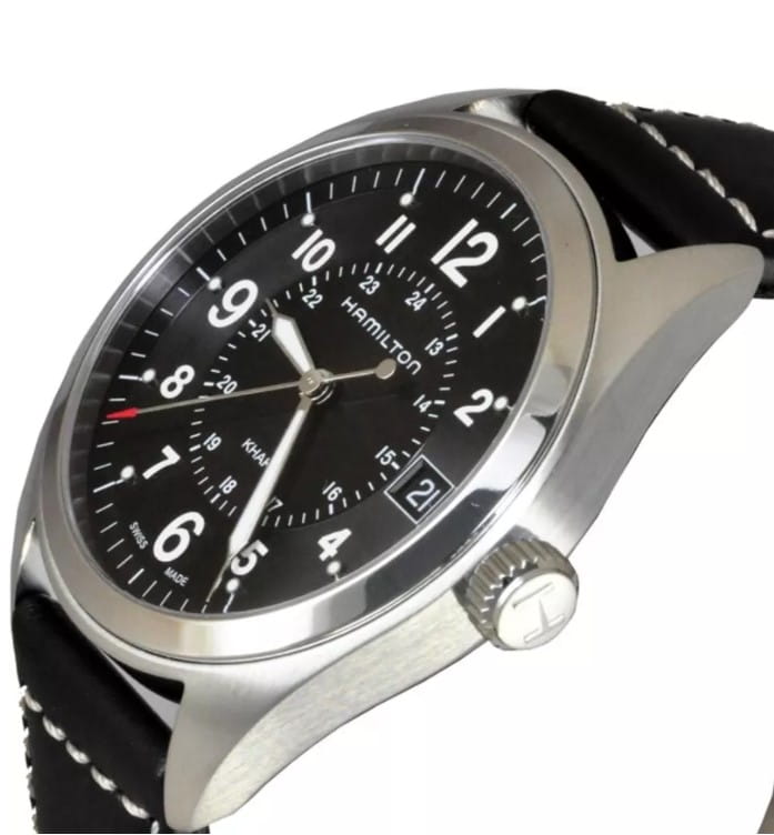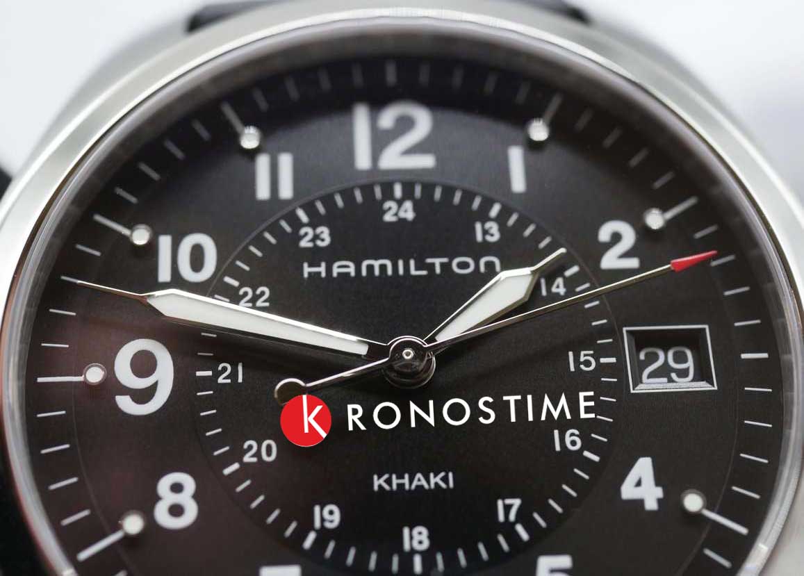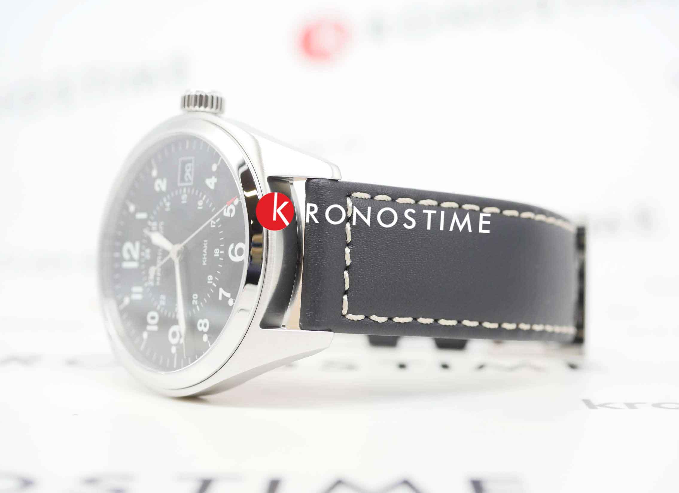 Мужские швейцарские кварцевые часы Hamilton Khaki Field Auto H68551733, кварцевый механизм с высокой точностью. Сапфировое стеклоСапфировое стеклоПрочный и надёжный материал из кристалла сапфира синтетического происхождения, характеризующийся особой твёрдостью и устойчивостью к царапинам и повреждениям. устойчивое к появлению царапин, обладающее высокой прозрачностью. Класс водозащиты: 50 метров, позволит защитить корпус от случайных брызг или капель дождя. Корпус часов изготовлен из стали. Стрелки и метки с люминесцентным покрытиемЛюминесцентное покрытиеПозволяет считывать показания времени в темноте. Производители наносят на стрелки, часовые индексы, безель или поверхность циферблата светонакопительный состав, дающий холодное свечение.. Кожаный ремешок.