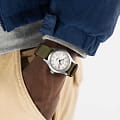 Hamilton Khaki Field Quartz H69401910 — практичные и надёжные часы в духе военной классики, идеально подходящие для повседневного использования. Корпус диаметром 38 мм выполнен из матовой нержавеющей стали, обеспечивая прочность и неброский утилитарный стиль. Циферблат оснащён крупными арабскими цифрами и стрелками с люминесцентным покрытиемЛюминесцентное покрытиеПозволяет считывать показания времени в темноте. Производители наносят на стрелки, часовые индексы, безель или поверхность циферблата светонакопительный состав, дающий холодное свечение., что гарантирует отличную читаемость даже в темноте. Защиту циферблата обеспечивает сапфировое стеклоСапфировое стеклоПрочный и надёжный материал из кристалла сапфира синтетического происхождения, характеризующийся особой твёрдостью и устойчивостью к царапинам и повреждениям., устойчивое к царапинам. Внутри установлен швейцарский кварцевый механизм ETA F06.105, обеспечивающий высокую точность и стабильность хода. Модель укомплектована тканевым ремешком цвета хаки с кожаной подкладкой, а классическая застёжка-пряжка гарантирует удобную и надёжную посадку. Водонепроницаемость 50 метров делает часы подходящими для повседневного ношения и защищает от мелких брызг.