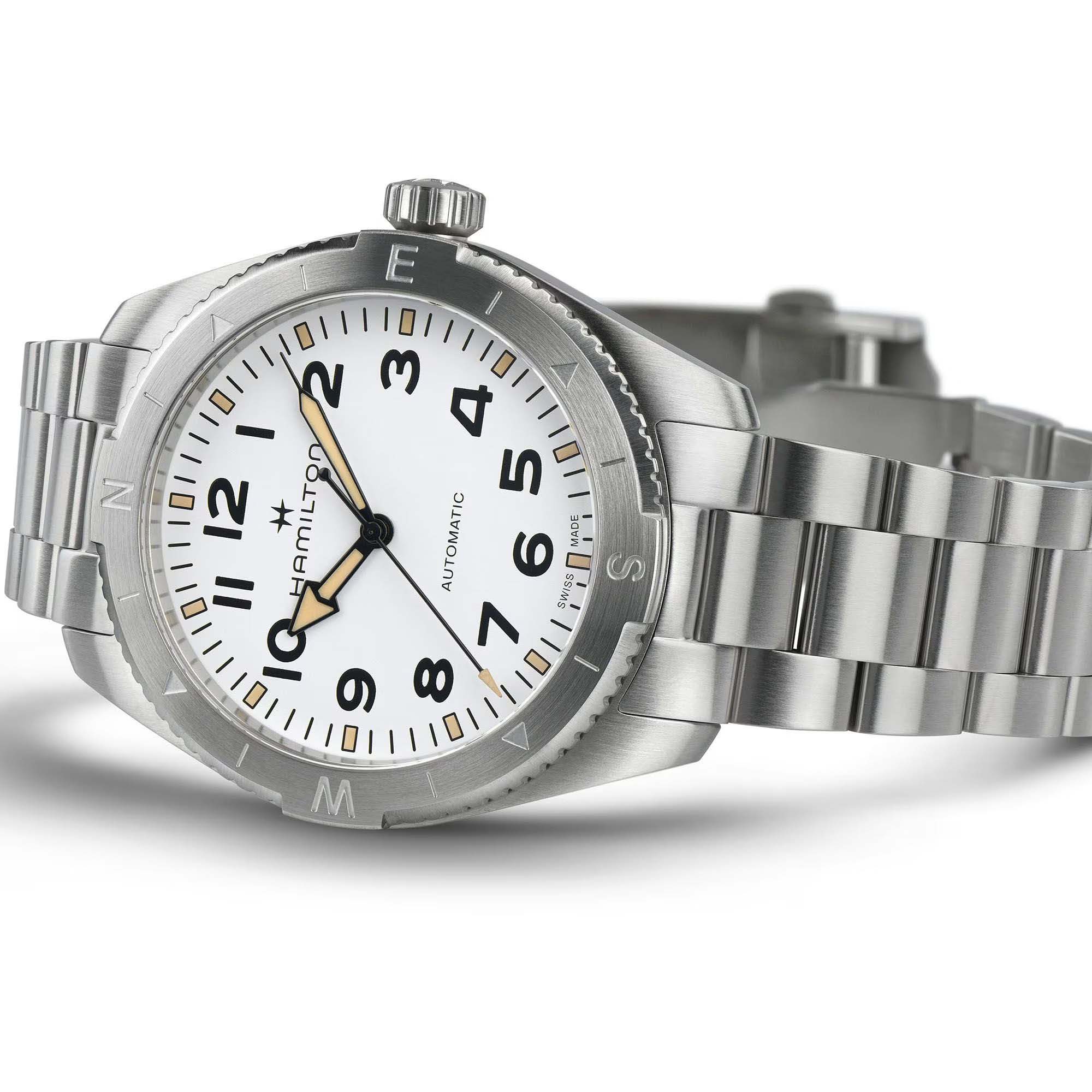 Мужские наручные часы Hamilton Khaki Field Expedition Auto H70315110 с автоматическим механизмом. Корпус часов изготовлен из нержавеющей стали. Стальной браслет на раскладной застёжкеРаскладная застёжкаТакой тип застёжки используется только на браслетах из металла. Она никогда не раскрывается полностью, происходит разделение на 2 и более частей. Раскладывающая застёжка снизит вероятность потери часов к минимуму.. Сапфировое стеклоСапфировое стеклоПрочный и надёжный материал из кристалла сапфира синтетического происхождения, характеризующийся особой твёрдостью и устойчивостью к царапинам и повреждениям. с антибликовым покрытием. Стрелки и метки с люминесцентным покрытиемЛюминесцентное покрытиеПозволяет считывать показания времени в темноте. Производители наносят на стрелки, часовые индексы, безель или поверхность циферблата светонакопительный состав, дающий холодное свечение.. Уровень влагозащиты: 100 метров, позволит плавать, нырять и заниматься другими водными видами спорта. Дизайн невероятно прочных часов Khaki Field Expedition завершает белый циферблат с пескоструйной обработкой, обеспечивающий идеальную считываемость показаний.