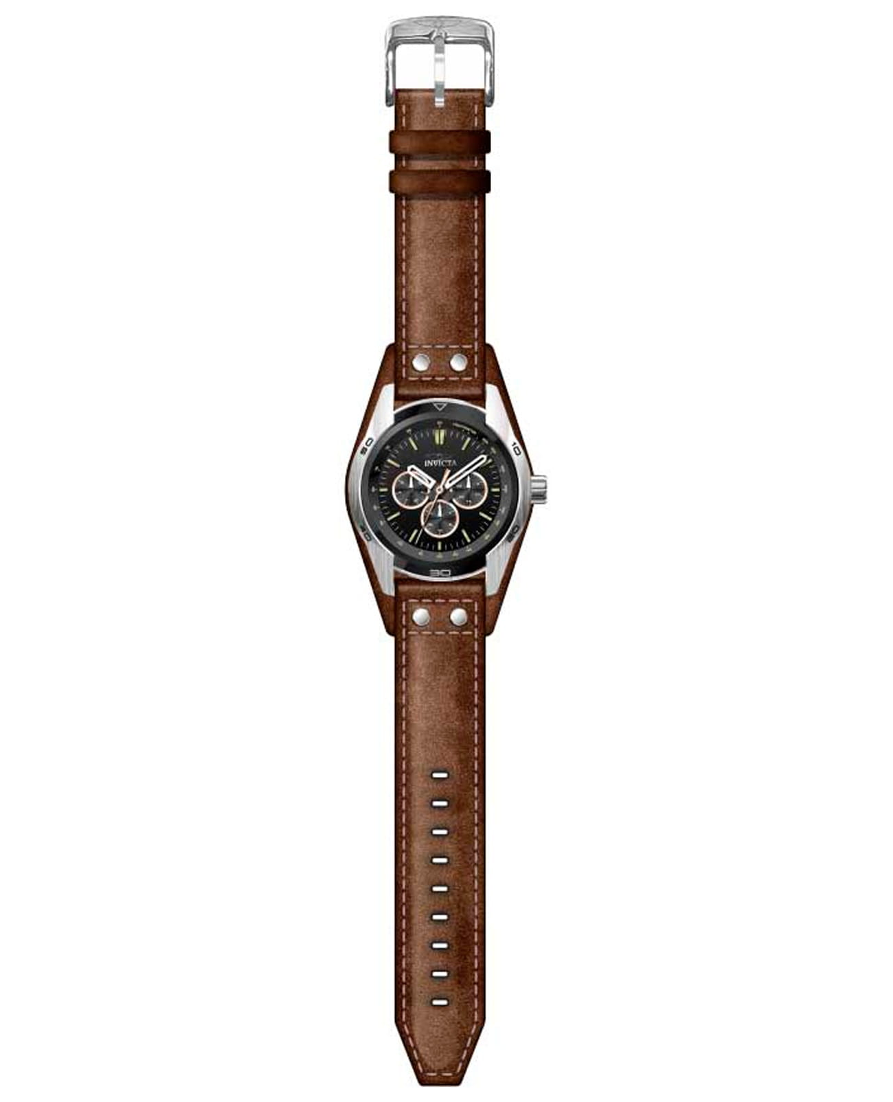 Мужские наручные часы Invicta Specialty IN44836 из коллекции Specialty сочетают в себе спортивный дизайн и надежность современных технологий. Модель обладает круглым корпусом диаметром 44 мм, выполненным из нержавеющей стали, что обеспечивает высокую устойчивость к внешним воздействиям . Ремешок часов выполнен из черной кожи с классической застежкой, гарантируя комфортное ношение в течение дня . Циферблат дополнен метками в виде штрихов и светящимися стрелками с люминесцентным покрытиемЛюминесцентное покрытиеПозволяет считывать показания времени в темноте. Производители наносят на стрелки, часовые индексы, безель или поверхность циферблата светонакопительный состав, дающий холодное свечение. Tritnite, которые обеспечивают отличную видимость даже в темноте после кратковременной зарядки светом . 12-ти и 24-х часовой формат времени, дата и день недели вынесены на отдельные циферблаты. Для защиты используется минеральное стеклоМинеральное стеклоМинеральное стекло представляет собой искусственно выращенный минерал кварца. Такое стекло отличается особой устойчивостью к повреждениям и царапинам. Уступает по некоторым качествам сапфировому стеклу., которое обеспечивает прочность и устойчивость к царапинам . Часы оснащены кварцевым механизмом калибра Seiko TMI VH63, что гарантирует точность хода без необходимости подзаводки . Водонепроницаемость часов достигает 30 метров, что позволяет использовать их во время мытья рук или плавания, однако не рекомендуется для глубоководного дайвинга . Сочетание практичности, надежности и стильного дизайна делает эту модель универсальным аксессуаром как для повседневной носки, так и для занятий спортом .