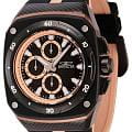Мужские наручные часы-хронографХронографФункция позволяет измерять отрезки времени с особой точностью: часы, минуты, секунды. Верным признаком хронографа является наличие на циферблате 3 дополнительных окошек-счётчиков. Invicta IN46105 из коллекции Speedway сочетают в себе спортивный дизайн и надежность современных технологий. Модель обладает круглым корпусом диаметром 46 мм, изготовленным из стали с IP-покрытиемIP-покрытиеМетод ионного напыления. Демонстрирует повышенную устойчивость к истиранию, окислению и химическим веществам. Под воздействием высокого давления и температуры около 1500°C молекулы металла надёжно соединяются с частицами корпуса часов., что обеспечивает привлекательный внешний вид и устойчивость к коррозии . Ремешок выполнен из силикона шириной 3 см, гарантируя комфортное ношение . Черный циферблат с метками в виде штрихов оснащен люминесцентным покрытиемЛюминесцентное покрытиеПозволяет считывать показания времени в темноте. Производители наносят на стрелки, часовые индексы, безель или поверхность циферблата светонакопительный состав, дающий холодное свечение., что обеспечивает хорошую видимость в темноте . Для защиты используется минеральное стеклоМинеральное стеклоМинеральное стекло представляет собой искусственно выращенный минерал кварца. Такое стекло отличается особой устойчивостью к повреждениям и царапинам. Уступает по некоторым качествам сапфировому стеклу., обеспечивающее прочную защиту от царапин . Часы работают на кварцевом механизме, что гарантирует точное время без необходимости подзаводки. Модель также является хронографомХронографФункция позволяет измерять отрезки времени с особой точностью: часы, минуты, секунды. Верным признаком хронографа является наличие на циферблате 3 дополнительных окошек-счётчиков., оснащенным функцией секундомераСекундомерСекундоме́р — прибор, способный измерять интервалы времени с точностью до долей секунды., делая ее идеальной для активного образа жизни . Водонепроницаемость часов достигает 50 метров (5 атмосфер), что позволяет использовать их во время мытья рук или дождя, однако не рекомендуется для плавания или дайвинга .