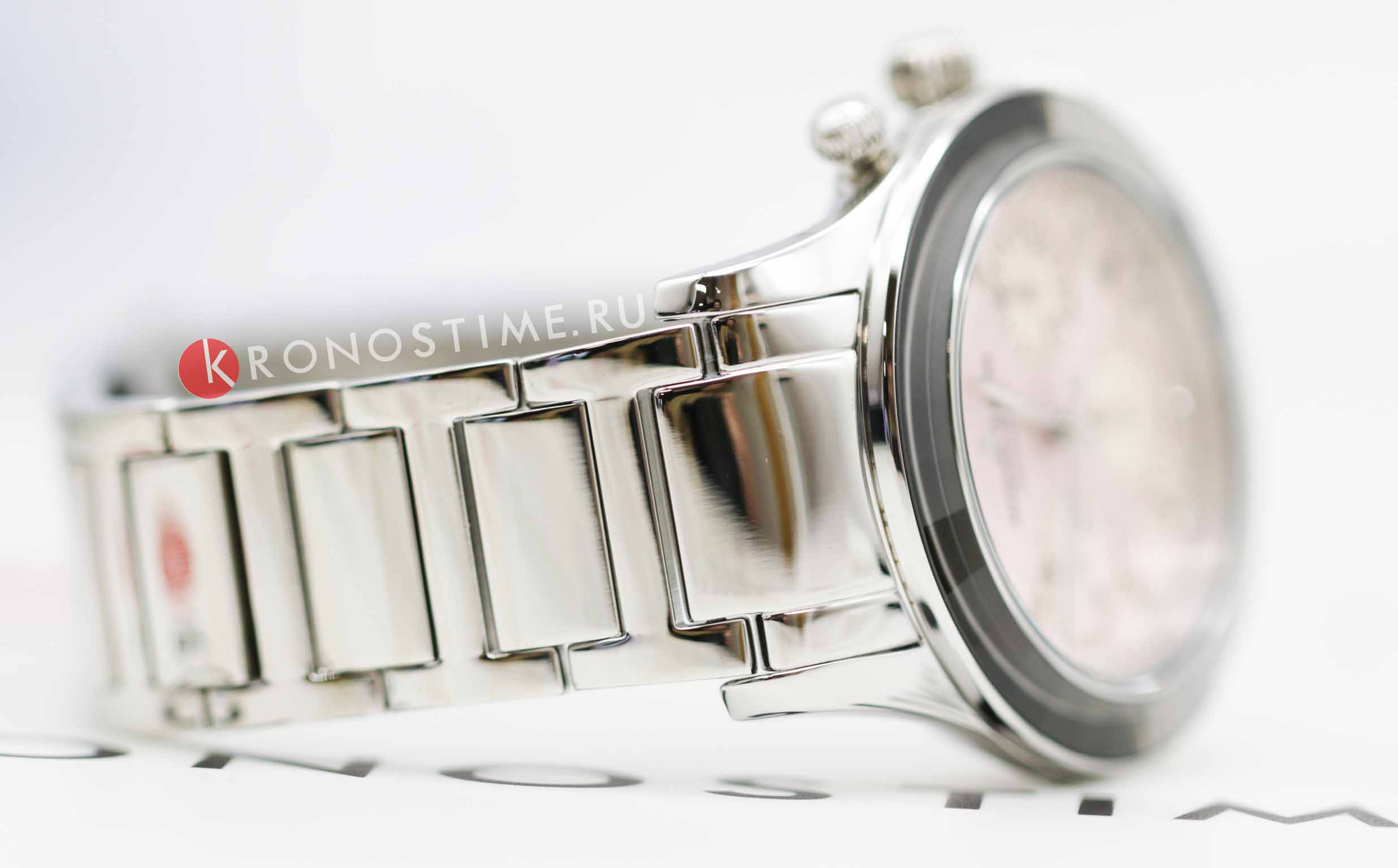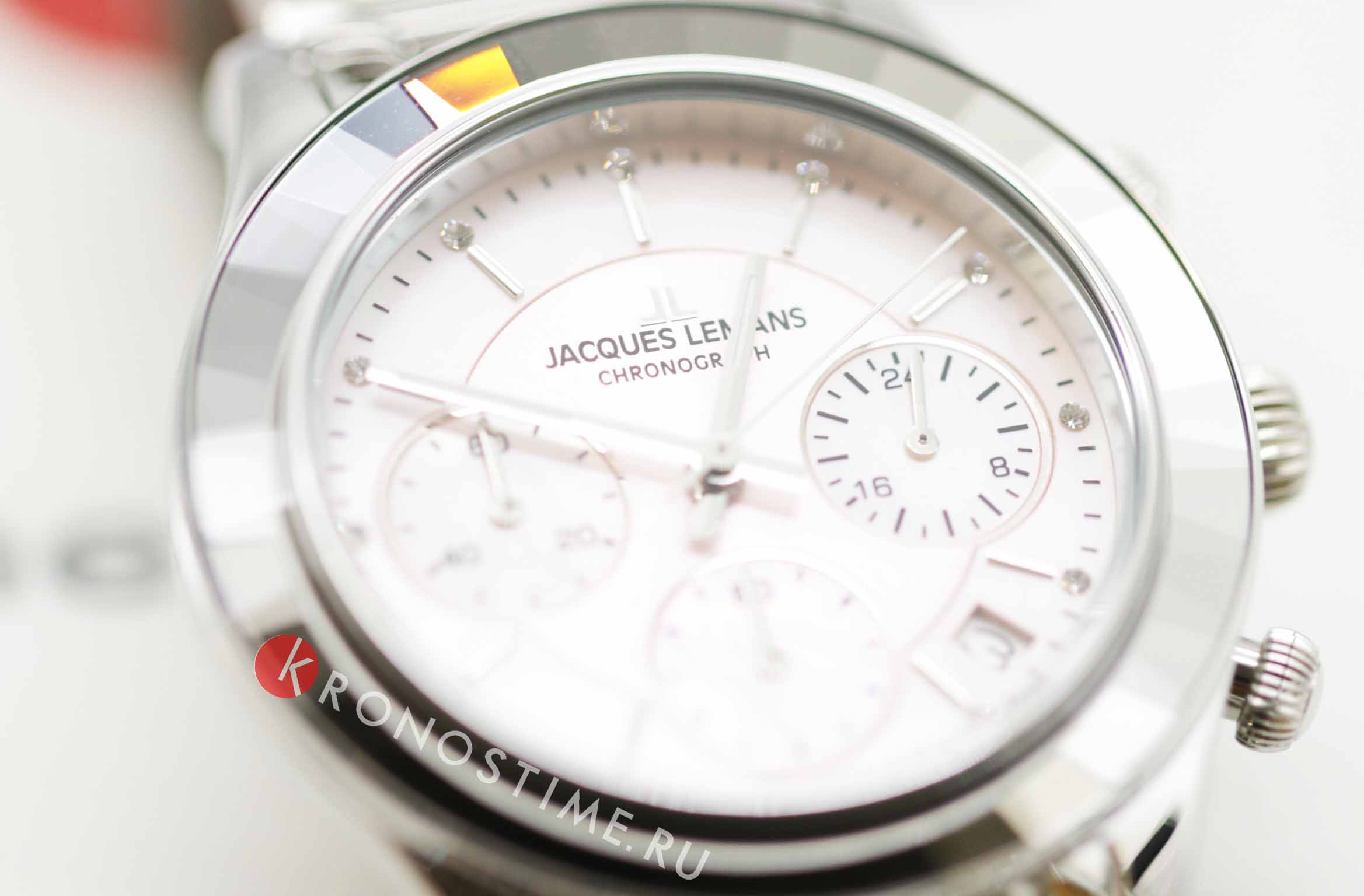 Женские часы-хронографХронографФункция позволяет измерять отрезки времени с особой точностью: часы, минуты, секунды. Верным признаком хронографа является наличие на циферблате 3 дополнительных окошек-счётчиков. c секундомеромСекундомерСекундоме́р — прибор, способный измерять интервалы времени с точностью до долей секунды. Jacques Lemans Venice 1-2151L, кварцевый механизм с высокой точностью. Минеральное стеклоМинеральное стеклоМинеральное стекло представляет собой искусственно выращенный минерал кварца. Такое стекло отличается особой устойчивостью к повреждениям и царапинам. Уступает по некоторым качествам сапфировому стеклу. устойчивое к мелким механическим повреждениям. Корпус из нержавеющей стали. Широкий безельБезельВнешний ободок, закрепляющий стекло. В спортивных часах так называется поворотное кольцо с делениями на циферблате, выполняет роль таймера – замеряет отрезки времени на шкале. Неподвижный безель – элемент декора. Однонаправленно вращающийся безель на дайверских часах позволяет фиксировать моменты погружения и выныривания на поверхность. с гранями. На циферблате расположены три дополнительных индикатора. Окошко даты находится в положении между 4 и 5 часов. Стрелки с люминесцентным покрытиемЛюминесцентное покрытиеПозволяет считывать показания времени в темноте. Производители наносят на стрелки, часовые индексы, безель или поверхность циферблата светонакопительный состав, дающий холодное свечение.. Каждая накладная риска украшена кристаллом Swarowski. Класс водозащиты: 50 метров, позволит защитить корпус от случайных брызг или капель дождя. Браслет из нержавеющей стали на раскладной застёжкеРаскладная застёжкаТакой тип застёжки используется только на браслетах из металла. Она никогда не раскрывается полностью, происходит разделение на 2 и более частей. Раскладывающая застёжка снизит вероятность потери часов к минимуму..