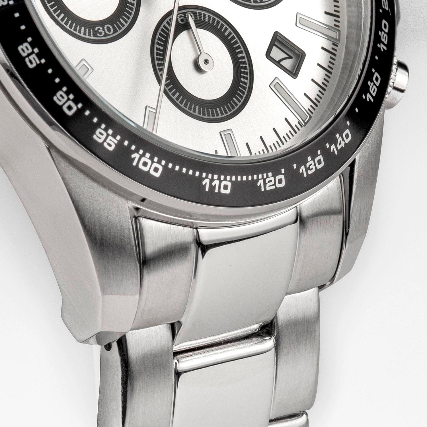 Кварцевый механизм с высокой точностью. БезельБезельВнешний ободок, закрепляющий стекло. В спортивных часах так называется поворотное кольцо с делениями на циферблате, выполняет роль таймера – замеряет отрезки времени на шкале. Неподвижный безель – элемент декора. Однонаправленно вращающийся безель на дайверских часах позволяет фиксировать моменты погружения и выныривания на поверхность. неповоротный. Минеральное стеклоМинеральное стеклоМинеральное стекло представляет собой искусственно выращенный минерал кварца. Такое стекло отличается особой устойчивостью к повреждениям и царапинам. Уступает по некоторым качествам сапфировому стеклу. устойчивое к появлению царапин, обладающее высокой прозрачностью. Стрелки и метки с люминесцентным покрытиемЛюминесцентное покрытиеПозволяет считывать показания времени в темноте. Производители наносят на стрелки, часовые индексы, безель или поверхность циферблата светонакопительный состав, дающий холодное свечение.. Класс водозащиты: 200 метров, позволит плавать, нырять и заниматься другими водными видами спорта. Корпус часов изготовлен из нержавеющей стали. Металлический браслет с раскладной застёжкойРаскладная застёжкаТакой тип застёжки используется только на браслетах из металла. Она никогда не раскрывается полностью, происходит разделение на 2 и более частей. Раскладывающая застёжка снизит вероятность потери часов к минимуму..