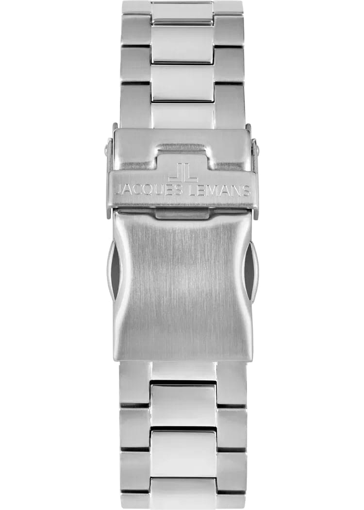 Мужские кварцевые часы Jacques Lemans BVB-01 – лаконичная красота и изысканная элегантность. Оригинальная модель с классическим оформлением станет превосходным завершением образа, наделив его индивидуальным характером. Корпус выполнен из нержавеющей стали серебристого цвета, диаметром 40 мм, что обеспечивает долговечность и утончённый внешний вид. Минеральное стеклоМинеральное стеклоМинеральное стекло представляет собой искусственно выращенный минерал кварца. Такое стекло отличается особой устойчивостью к повреждениям и царапинам. Уступает по некоторым качествам сапфировому стеклу. повышенной прочности Crystex защищает циферблат от царапин. Стальной браслет на раскладной застёжке с фиксаторомРаскладная застёжкаТакой тип застёжки используется только на браслетах из металла. Она никогда не раскрывается полностью, происходит разделение на 2 и более частей. Раскладывающая застёжка снизит вероятность потери часов к минимуму. обеспечивает комфортное ношение. Водозащита 50 метров позволит защитить корпус от случайных брызг или капель дождя. Стрелки с люминесцентным покрытиемЛюминесцентное покрытиеПозволяет считывать показания времени в темноте. Производители наносят на стрелки, часовые индексы, безель или поверхность циферблата светонакопительный состав, дающий холодное свечение. позволяющие легко определять время даже в темноте. Окошко даты находится в положении 3 часа. Рифленая заводная головка с защитой. Это аксессуар для мужчины, который ценит классический стиль и функциональность.