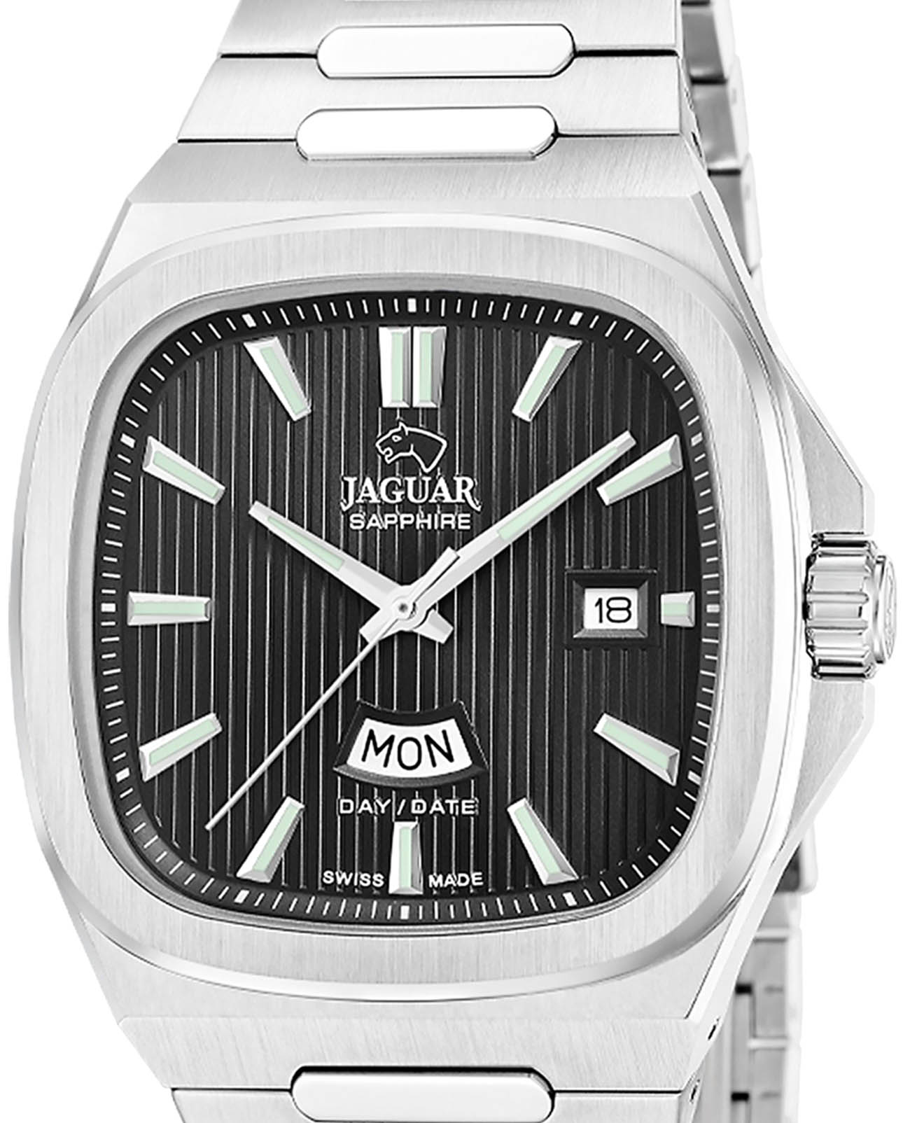 Мужские швейцарские часы Jaguar Rond Carre J1049/4 — это стильное сочетание элегантности и современного дизайна. Корпус из нержавеющей стали диаметром 41 мм идеально сбалансирован и элегантен. Сапфировое стеклоСапфировое стеклоПрочный и надёжный материал из кристалла сапфира синтетического происхождения, характеризующийся особой твёрдостью и устойчивостью к царапинам и повреждениям. с антибликовым покрытием защищает циферблат от царапин и обеспечивает отличную читаемость при любом освещении. Стальной браслет на застёжке-бабочке с кнопкамиЗастёжка "бабочка"Такой вид застёжки дополняется предохранителями, помогающими избежать случайного раскрытия браслета. Обладают изящным исполнением. идеально дополняют дизайн часов, обеспечивая комфортное ношение. Стрелки и метки на циферблате имеют люминесцентное покрытиеЛюминесцентное покрытиеПозволяет считывать показания времени в темноте. Производители наносят на стрелки, часовые индексы, безель или поверхность циферблата светонакопительный состав, дающий холодное свечение. позволяющее легко определять время даже в темноте. В часах есть функции отображение даты в позиции "3 часа" и дня недели на "6 часов" с помощью которой вы сможете измерять время с высокой точностью. Часы обладают водонепроницаемостью 50 метров, что позволит защитить корпус от случайных брызг или капель дождя.