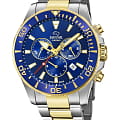 Мужские швейцарские часы-хронографХронографФункция позволяет измерять отрезки времени с особой точностью: часы, минуты, секунды. Верным признаком хронографа является наличие на циферблате 3 дополнительных окошек-счётчиков. Jaguar Executive Diver Chrono J862/1. Кварцевый швейцарский калибр Ronda 6003D. Сапфировое стеклоСапфировое стеклоПрочный и надёжный материал из кристалла сапфира синтетического происхождения, характеризующийся особой твёрдостью и устойчивостью к царапинам и повреждениям. устойчивое к мелким механическим повреждениям. Корпус часов изготовлен из нержавеющей стали. Стрелки и метки с люминесцентным покрытиемЛюминесцентное покрытиеПозволяет считывать показания времени в темноте. Производители наносят на стрелки, часовые индексы, безель или поверхность циферблата светонакопительный состав, дающий холодное свечение.. Окошко даты находится в положении между «4» и «5 часами». Класс водозащиты: 200 метров, позволит плавать, нырять и заниматься другими водными видами спорта. Стальной браслет с частичным PVD-покрытиемPVDУльтратонкое покрытие наносится в технике вакуумного напыления, сочетает в себе нитрид титана особой прочности со слоем золота или оксида хрома. Несёт в себе декоративную или защитную функцию. на раскладной застёжкеРаскладная застёжкаТакой тип застёжки используется только на браслетах из металла. Она никогда не раскрывается полностью, происходит разделение на 2 и более частей. Раскладывающая застёжка снизит вероятность потери часов к минимуму.. БезельБезельВнешний ободок, закрепляющий стекло. В спортивных часах так называется поворотное кольцо с делениями на циферблате, выполняет роль таймера – замеряет отрезки времени на шкале. Неподвижный безель – элемент декора. Однонаправленно вращающийся безель на дайверских часах позволяет фиксировать моменты погружения и выныривания на поверхность. с PVD-покрытиемPVDУльтратонкое покрытие наносится в технике вакуумного напыления, сочетает в себе нитрид титана особой прочности со слоем золота или оксида хрома. Несёт в себе декоративную или защитную функцию..