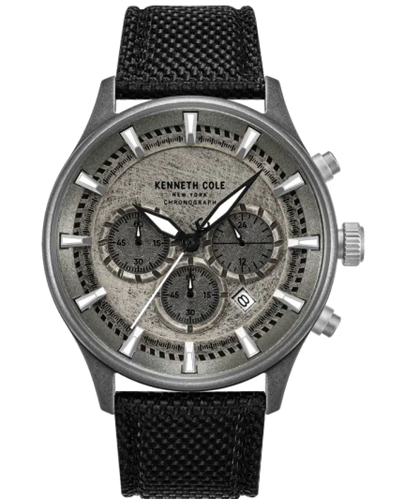 Мужские кварцевые часы-хронограф Kenneth Cole — это выразительный и элегантный аксессуар. Корпус диаметром 43 мм выполнен из нержавеющей стали 316L. Циферблат серого цвета оформлен штрихами и тремя субциферблатами хронографа. Стрелки и метки с люминесцентным покрытиемЛюминесцентное покрытиеПозволяет считывать показания времени в темноте. Производители наносят на стрелки, часовые индексы, безель или поверхность циферблата светонакопительный состав, дающий холодное свечение.. Окошко даты расположено между 4 и 5 часами. Циферблат защищён минеральным стекломМинеральное стеклоМинеральное стекло представляет собой искусственно выращенный минерал кварца. Такое стекло отличается особой устойчивостью к повреждениям и царапинам. Уступает по некоторым качествам сапфировому стеклу.. Механизм — кварцевый с функциями хронографаХронографФункция позволяет измерять отрезки времени с особой точностью: часы, минуты, секунды. Верным признаком хронографа является наличие на циферблате 3 дополнительных окошек-счётчиков. и секундомераСекундомерСекундоме́р — прибор, способный измерять интервалы времени с точностью до долей секунды.. Часы оснащены нейлоновым ремешком на стандартной застёжке. Водонепроницаемость 50 м позволяет использовать часы в повседневных условиях. Идеальный выбор для тех, кто ценит стиль, точность и американское качество.