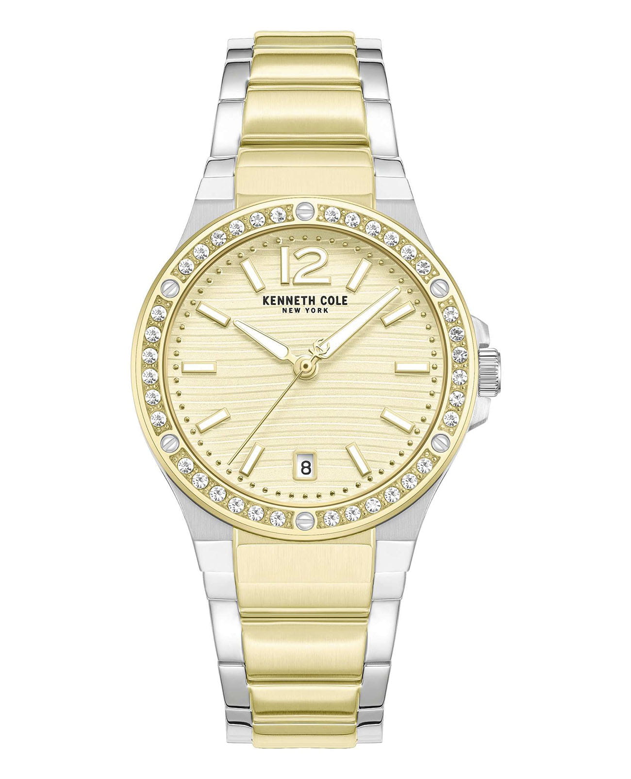 Женские кварцевые часы Kenneth Cole — это элегантный и выразительный аксессуар. Корпус диаметром 32 мм выполнен из нержавеющей стали 316L. Циферблат синего цвета оформлен штрихами, арабской цифрой 12 и украшен цирконами. БезельБезельВнешний ободок, закрепляющий стекло. В спортивных часах так называется поворотное кольцо с делениями на циферблате, выполняет роль таймера – замеряет отрезки времени на шкале. Неподвижный безель – элемент декора. Однонаправленно вращающийся безель на дайверских часах позволяет фиксировать моменты погружения и выныривания на поверхность. с IP-покрытиемIP-покрытиеМетод ионного напыления. Демонстрирует повышенную устойчивость к истиранию, окислению и химическим веществам. Под воздействием высокого давления и температуры около 1500°C молекулы металла надёжно соединяются с частицами корпуса часов. инкрустирован кристаллами. Окошко даты расположено в положении 6 часов. Циферблат защищён минеральным стекломМинеральное стеклоМинеральное стекло представляет собой искусственно выращенный минерал кварца. Такое стекло отличается особой устойчивостью к повреждениям и царапинам. Уступает по некоторым качествам сапфировому стеклу. с антибликовым покрытиемАнтибликовое покрытиеСлой оксида металла в 0,13-0,3 микрон, благодаря которому стекло часов не бликует и не отражает свет. Антибликовое покрытие уменьшает отражение света в 10 раз, обеспечивая отличную читаемость показателей циферблата.. Механизм — кварцевый калибр TMI VX32. Часы оснащены стальным браслетом с частичным IP-покрытиемIP-покрытиеМетод ионного напыления. Демонстрирует повышенную устойчивость к истиранию, окислению и химическим веществам. Под воздействием высокого давления и температуры около 1500°C молекулы металла надёжно соединяются с частицами корпуса часов. на раскладной застёжкеРаскладная застёжкаТакой тип застёжки используется только на браслетах из металла. Она никогда не раскрывается полностью, происходит разделение на 2 и более частей. Раскладывающая застёжка снизит вероятность потери часов к минимуму.. Водонепроницаемость 30 м позволяет использовать часы в повседневных условиях. Идеальный выбор для тех, кто ценит стиль, блеск и американское качество.