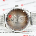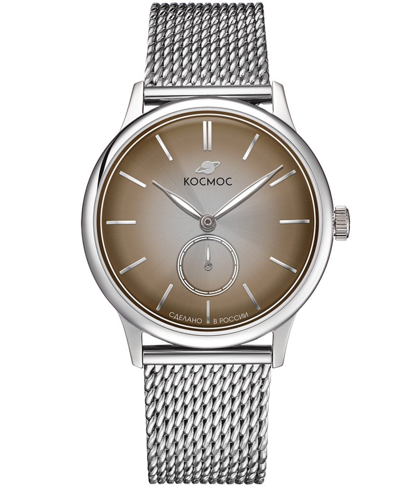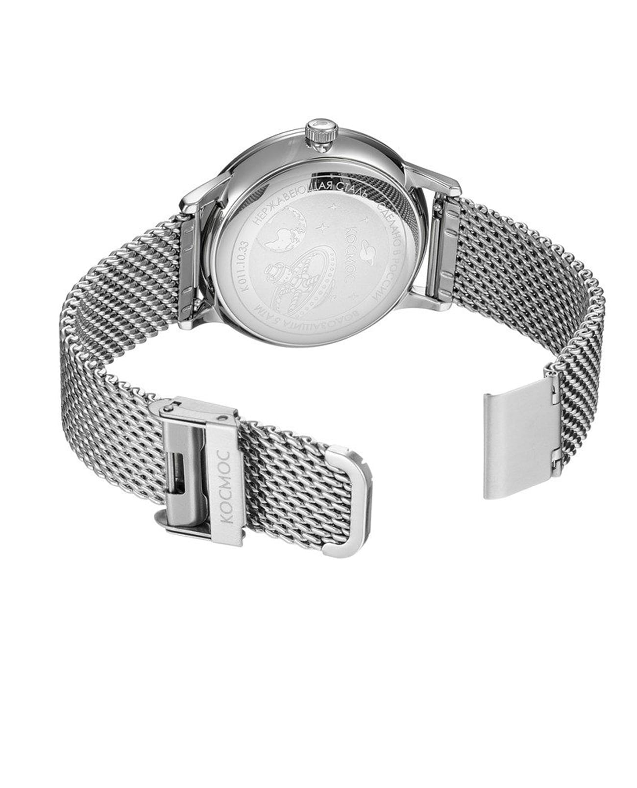 Мужские наручные часы Космос Сириус K 021.10.30 — это сочетание традиций часового искусства 60-70-х годов и футуристического дизайна, вдохновленного космическими исследованиями. Они не только служат напоминанием о прошлом, но и побуждают задуматься о будущем, позволяя наслаждаться качеством и смыслом, вложенными в каждую деталь. Полированный корпус часов выполнен в виде силуэта летающей тарелки благодаря выпуклым формам стекла и нижней части корпуса. Стальные ушки, которые напоминают опоры летающей тарелки, завершает общий образ. На задней крышке часов выгравирован фантазийный сюжет – космическая станция будущего. Бежевый циферблат в ретро-стиле с выгнутыми краями требует сложной технологии производства, что делает их аналогами часов прошлых эпох. Кончик секундной стрелки изогнут так, чтобы гармонировать с формой циферблата. Выпуклый градиентный циферблат украшен шлифовкой, напоминающей солнечные лучи, и ручными индексами, надежно закрепленными на двух штифтах. Специальное люминесцентное покрытиеЛюминесцентное покрытиеПозволяет считывать показания времени в темноте. Производители наносят на стрелки, часовые индексы, безель или поверхность циферблата светонакопительный состав, дающий холодное свечение. нанесено на часовую, минутную и секундную стрелки, а также на пунктирные метки и окантовку циферблата, создавая эффект светящегося изображения в темноте. Форма минерального стеклаМинеральное стеклоМинеральное стекло представляет собой искусственно выращенный минерал кварца. Такое стекло отличается особой устойчивостью к повреждениям и царапинам. Уступает по некоторым качествам сапфировому стеклу. также тщательно продумана — оно изогнуто как снаружи, так и изнутри. Эта конструкция предотвращает искажение изображения на циферблате, в отличие от традиционных стекол с прямой внутренней частью, которые могут создавать оптические искажения. Часы комплектуются стальным браслетом миланского плетения, который дополнительно защищает от случайного падения. Корпус и браслет часов изготовлены из гипоаллергенной стали, что обеспечивает комфорт при ношении. Заводная головка, застежка и ремешок украшены фирменным логотипом, подчеркивающим индивидуальность данной модели.