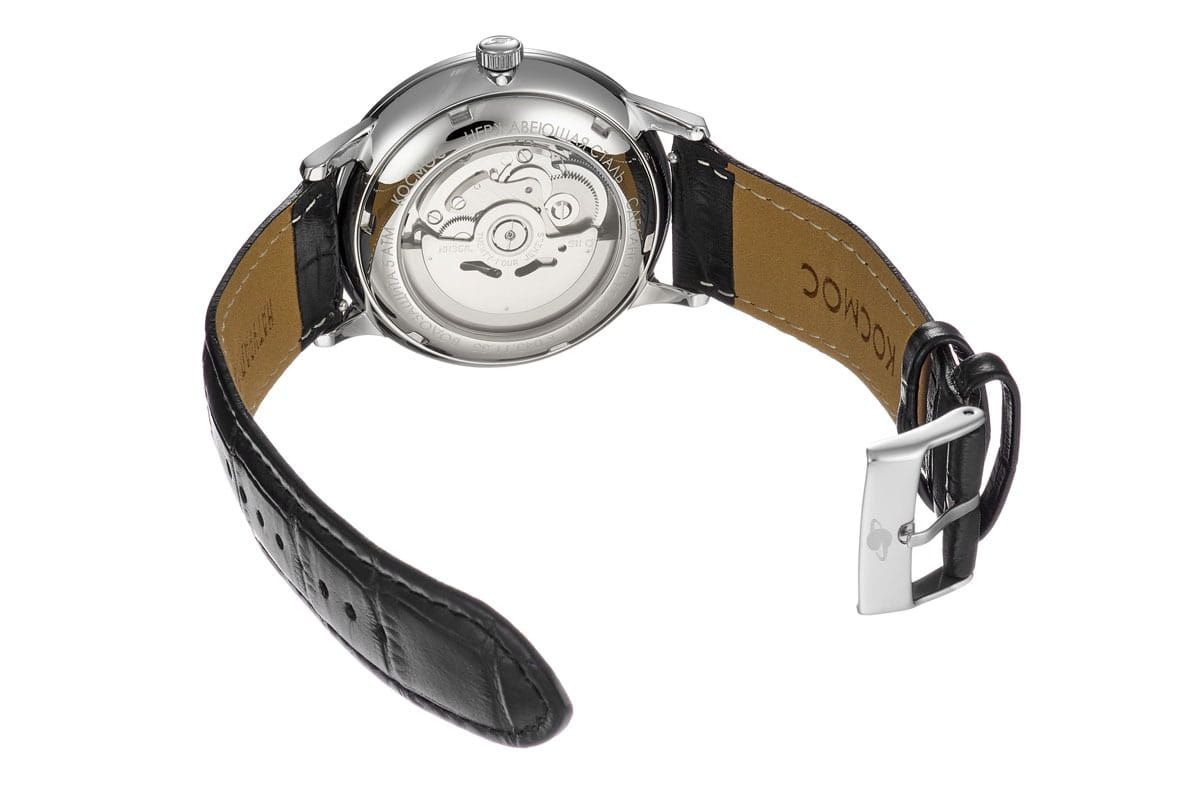 Мужские наручные часы Космос K 043.1 - Космонавт на Луне — это уникальная модель. Фантазийный пейзаж на циферблате этих часов переносит нас на поверхность естественного спутника Земли. При первом взгляде кажется, что центральное место в композиции занимает космонавт в сверкающем скафандре. Однако, если присмотреться, становится очевидным, что истинный фокус — это завораживающая Земля, на которую с восторгом взирает космический исследователь. Для создания этой уникальной модели часов мастера бренда выбрали технику лаковой миниатюры. На основу наносится несколько слоев лака и краски, их чередование создает объемный эффект и ощущение движения. Процесс постепенной прорисовки деталей довольно длительный: художнику требуется до 50 часов для завершения одного сюжета. Затем миниатюра запекается в специальной печи, что придаёт рисунку необходимую яркость и завершенность. Эти часы созданы в единственном экземпляре. В часах установлен механизм TMI с функцией автоподзавода. Они показывают часы, минуты и секунды, а также дату и день недели, индикатор которых с накладной рамкой расположен в положении «3 часа». За работой механизма можно наблюдать через прозрачную заднюю крышку. Часовая и минутная стрелки c люминесцентным покрытиемЛюминесцентное покрытиеПозволяет считывать показания времени в темноте. Производители наносят на стрелки, часовые индексы, безель или поверхность циферблата светонакопительный состав, дающий холодное свечение., которое светится в темноте. Минеральное стеклоМинеральное стеклоМинеральное стекло представляет собой искусственно выращенный минерал кварца. Такое стекло отличается особой устойчивостью к повреждениям и царапинам. Уступает по некоторым качествам сапфировому стеклу. изготовлено по технологии, характерной для 60-70-х годов прошлого века: оно выпуклое с обеих сторон. Ремешок выполнен из натуральной кожи черного цвета с аккуратной строчкой. Специальное крепление позволяет легко заменить ремешок на аналогичный или на стальной браслет миланского плетения.
