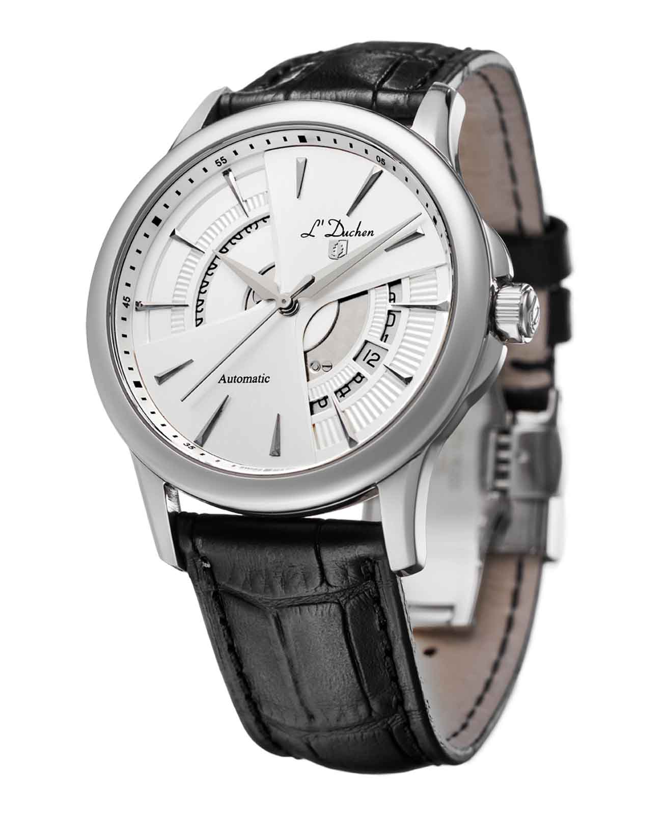 Мужские механические швейцарские часы с автоподзаводом LDuchen Quazar D 153.11.33, кварцевый механизм с высокой точностью. Сапфировое стеклоСапфировое стеклоПрочный и надёжный материал из кристалла сапфира синтетического происхождения, характеризующийся особой твёрдостью и устойчивостью к царапинам и повреждениям. устойчивое к появлению царапин, обладающее высокой прозрачностью. Корпус часов выполнен из нержавеющей стали. Класс водозащиты: 50 метров, позволит защитить корпус от случайных брызг или капель дождя. Кожаный ремешок на раскладной застёжкеРаскладная застёжкаТакой тип застёжки используется только на браслетах из металла. Она никогда не раскрывается полностью, происходит разделение на 2 и более частей. Раскладывающая застёжка снизит вероятность потери часов к минимуму..