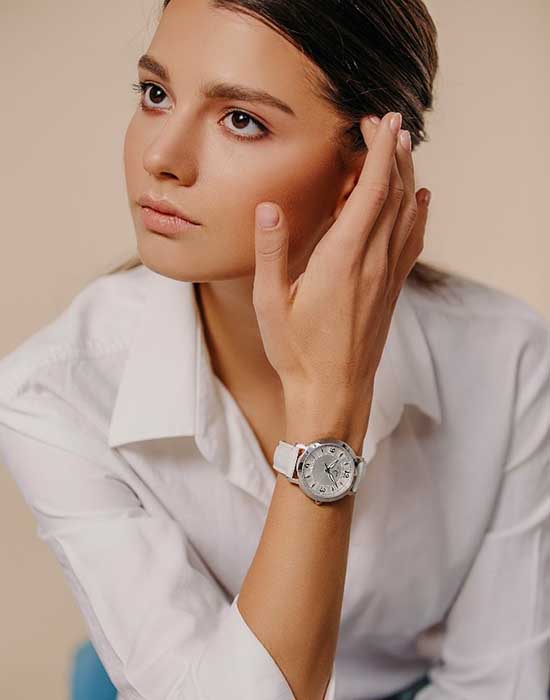 Стильные женские часы на браслете, украшенные кристаллами Swarovski.