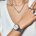 Женские швейцарские механические часы с автоподзаводом L'Duchen Coquille D 713.16.33 M. Сапфировое стеклоСапфировое стеклоПрочный и надёжный материал из кристалла сапфира синтетического происхождения, характеризующийся особой твёрдостью и устойчивостью к царапинам и повреждениям. устойчивое к появлению царапин, обладающее высокой прозрачностью. Корпус часов выполнен из нержавеющей стали. БезельБезельВнешний ободок, закрепляющий стекло. В спортивных часах так называется поворотное кольцо с делениями на циферблате, выполняет роль таймера – замеряет отрезки времени на шкале. Неподвижный безель – элемент декора. Однонаправленно вращающийся безель на дайверских часах позволяет фиксировать моменты погружения и выныривания на поверхность. и циферблат украшены фианитами. Стрелки с люминесцентным покрытиемЛюминесцентное покрытиеПозволяет считывать показания времени в темноте. Производители наносят на стрелки, часовые индексы, безель или поверхность циферблата светонакопительный состав, дающий холодное свечение.. Класс водозащиты: 50 метров, позволит защитить корпус от случайных брызг или капель дождя. Стальной браслет миланского плетения на раскладном замкеРаскладной замокДанный вариант застежки используется только на часах с металлическим браслетом. Отличительная особенность такого крепления в том, что длина браслета становится универсальной и вы можете самостоятельно отрегулировать нужный вам размер – застежка просто двигается по браслету часов..