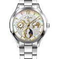 Женские швейцарские кварцевые часы L'Duchen Celeste D 857.10.32. Сапфировое стеклоСапфировое стеклоПрочный и надёжный материал из кристалла сапфира синтетического происхождения, характеризующийся особой твёрдостью и устойчивостью к царапинам и повреждениям. устойчивое к появлению царапин, обладающее высокой прозрачностью. Корпус часов выполнен из нержавеющей стали. Число и день недели вынесены на отдельные циферблаты. Указатель фаз Луны находится в положении 6 часов. Класс водозащиты: 50 метров, позволит защитить корпус от случайных брызг или капель дождя. Стальной браслет на застёжке-бабочке с кнопкамиЗастёжка "бабочка"Такой вид застёжки дополняется предохранителями, помогающими избежать случайного раскрытия браслета. Обладают изящным исполнением. .