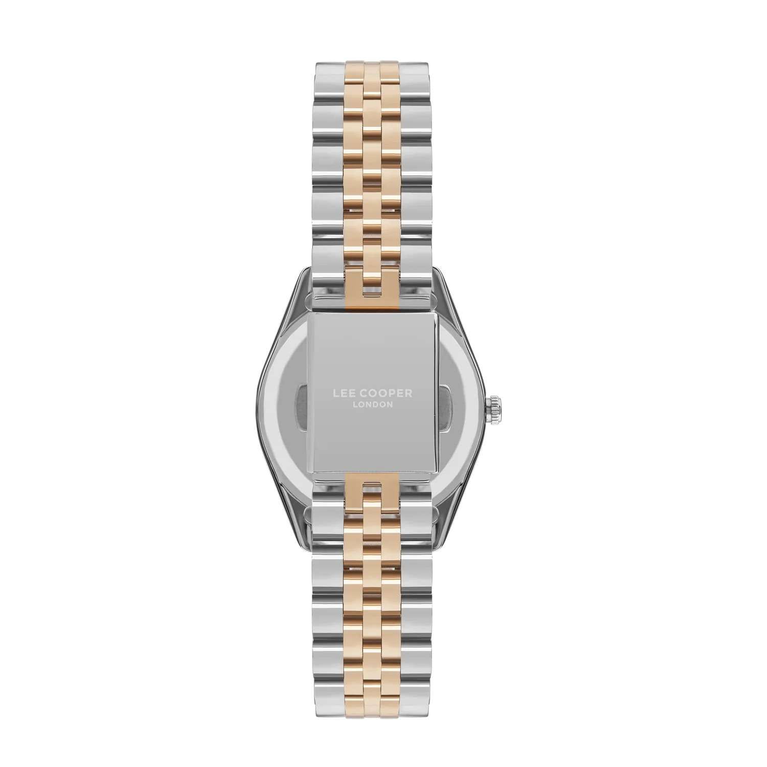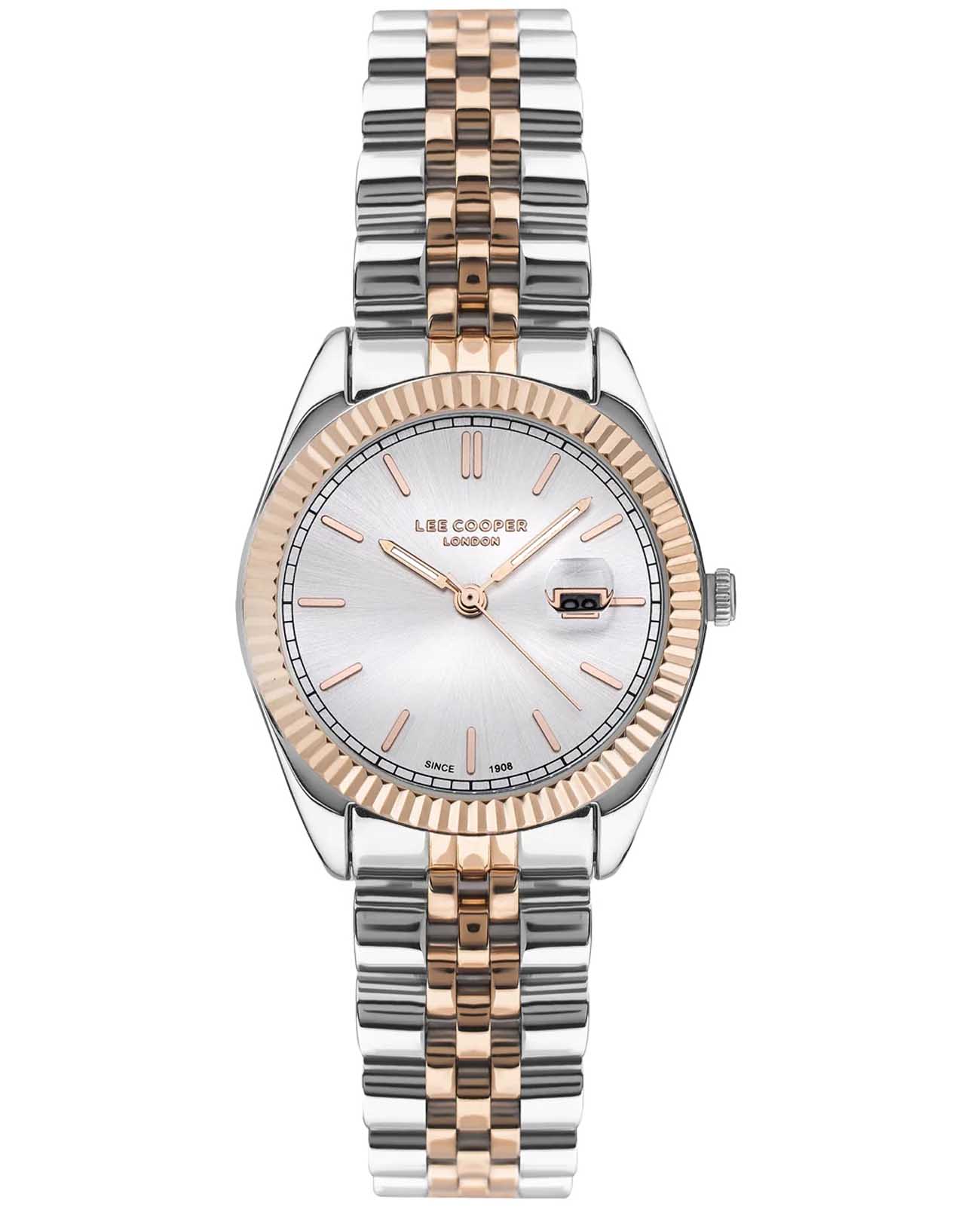 Женские наручные часы Lee Cooper LC07326.530 — это элегантная модель с утончённым дизайном. Корпус диаметром 32 мм выполнен из суперметалла, что придаёт часам изысканный вид. Серебристый циферблат украшен изящными метками и стрелками, обеспечивая удобное считывание времени. Циферблат защищён минеральным стекломМинеральное стеклоМинеральное стекло представляет собой искусственно выращенный минерал кварца. Такое стекло отличается особой устойчивостью к повреждениям и царапинам. Уступает по некоторым качествам сапфировому стеклу., устойчивым к царапинам. Часы работают на кварцевом механизме, обеспечивая точность хода. Браслет из нержавеющей стали с раскладной застёжкойРаскладная застёжкаТакой тип застёжки используется только на браслетах из металла. Она никогда не раскрывается полностью, происходит разделение на 2 и более частей. Раскладывающая застёжка снизит вероятность потери часов к минимуму. гарантирует комфортное ношение и надёжную фиксацию на запястье. Водозащита 30 метров защищает часы от случайных брызг и дождя, делая их подходящими для повседневного использования. БезельБезельВнешний ободок, закрепляющий стекло. В спортивных часах так называется поворотное кольцо с делениями на циферблате, выполняет роль таймера – замеряет отрезки времени на шкале. Неподвижный безель – элемент декора. Однонаправленно вращающийся безель на дайверских часах позволяет фиксировать моменты погружения и выныривания на поверхность. с IP-покрытиемIP-покрытиеМетод ионного напыления. Демонстрирует повышенную устойчивость к истиранию, окислению и химическим веществам. Под воздействием высокого давления и температуры около 1500°C молекулы металла надёжно соединяются с частицами корпуса часов.. Стрелки покрыты люминесцентным покрытиемЛюминесцентное покрытиеПозволяет считывать показания времени в темноте. Производители наносят на стрелки, часовые индексы, безель или поверхность циферблата светонакопительный состав, дающий холодное свечение., обеспечивая удобное считывание показаний в условиях недостаточного освещения.