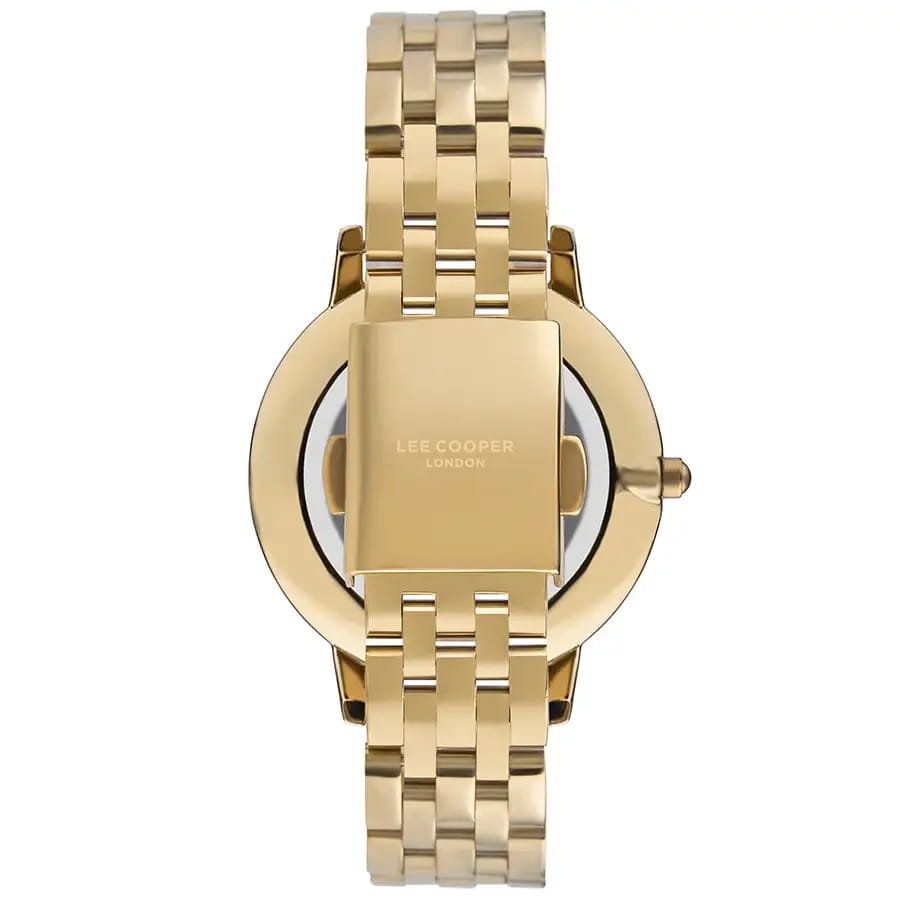 Женские наручные часы Lee Cooper LC07402.130 — это элегантная модель с утончённым дизайном. Корпус диаметром 36 мм выполнен из нержавеющей стали с IP-покрытиемIP-покрытиеМетод ионного напыления. Демонстрирует повышенную устойчивость к истиранию, окислению и химическим веществам. Под воздействием высокого давления и температуры около 1500°C молекулы металла надёжно соединяются с частицами корпуса часов., что придаёт часам изысканный вид. Узорчатый серебристый циферблат украшен изящными вставками из кристаллов и стрелками, обеспечивая удобное считывание времени. Циферблат защищён минеральным стекломМинеральное стеклоМинеральное стекло представляет собой искусственно выращенный минерал кварца. Такое стекло отличается особой устойчивостью к повреждениям и царапинам. Уступает по некоторым качествам сапфировому стеклу., устойчивым к царапинам. Часы работают на кварцевом механизме, обеспечивая точность хода. Браслет из нержавеющей стали с раскладной застёжкойРаскладная застёжкаТакой тип застёжки используется только на браслетах из металла. Она никогда не раскрывается полностью, происходит разделение на 2 и более частей. Раскладывающая застёжка снизит вероятность потери часов к минимуму. гарантирует комфортное ношение и надёжную фиксацию на запястье. Водозащита 30 метров защищает часы от случайных брызг и дождя, делая их подходящими для повседневного использования.
