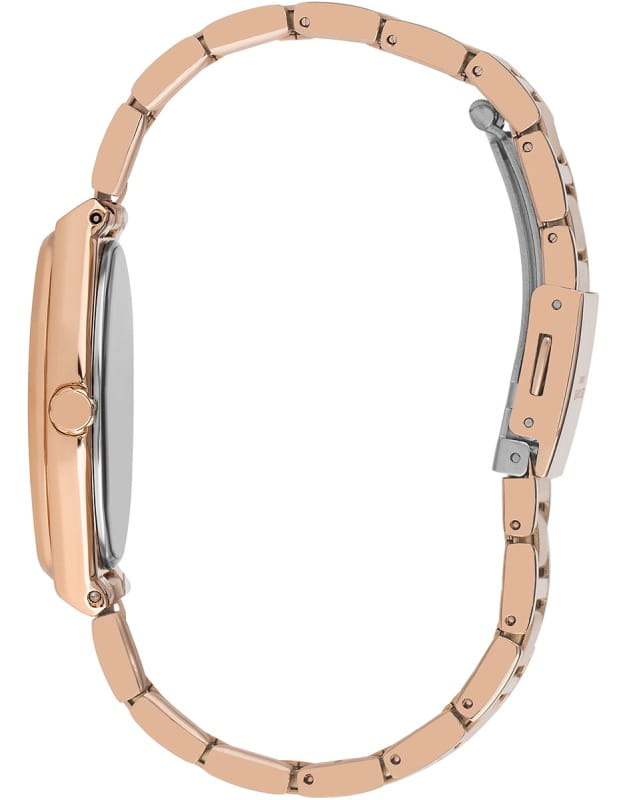Женские наручные часы Lee Cooper LC07480.420 — это элегантная модель с утончённым дизайном. Корпус диаметром 35 мм выполнен из нержавеющей стали, а безельБезельВнешний ободок, закрепляющий стекло. В спортивных часах так называется поворотное кольцо с делениями на циферблате, выполняет роль таймера – замеряет отрезки времени на шкале. Неподвижный безель – элемент декора. Однонаправленно вращающийся безель на дайверских часах позволяет фиксировать моменты погружения и выныривания на поверхность. золотистого цвета с IP-покрытиемIP-покрытиеМетод ионного напыления. Демонстрирует повышенную устойчивость к истиранию, окислению и химическим веществам. Под воздействием высокого давления и температуры около 1500°C молекулы металла надёжно соединяются с частицами корпуса часов. и кристаллами придаёт часам изысканный вид. Перламутровый циферблат украшен изящными метками и стрелками, обеспечивая удобное считывание времени. Циферблат защищён минеральным стекломМинеральное стеклоМинеральное стекло представляет собой искусственно выращенный минерал кварца. Такое стекло отличается особой устойчивостью к повреждениям и царапинам. Уступает по некоторым качествам сапфировому стеклу., устойчивым к царапинам. Часы работают на кварцевом механизме, обеспечивая точность хода. Браслет из нержавеющей стали с раскладной застёжкойРаскладная застёжкаТакой тип застёжки используется только на браслетах из металла. Она никогда не раскрывается полностью, происходит разделение на 2 и более частей. Раскладывающая застёжка снизит вероятность потери часов к минимуму. гарантирует комфортное ношение и надёжную фиксацию на запястье. Водозащита 30 метров защищает часы от случайных брызг и дождя, делая их подходящими для повседневного использования.