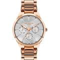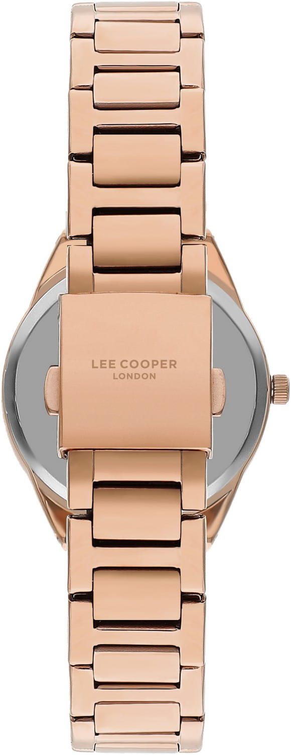 Женские часы Lee Cooper LC07643.430 — это стильное сочетание элегантности и современного дизайна. Круглый корпус диаметром 36 мм выполнен из суперметалла с IP-покрытиемIP-покрытиеМетод ионного напыления. Демонстрирует повышенную устойчивость к истиранию, окислению и химическим веществам. Под воздействием высокого давления и температуры около 1500°C молекулы металла надёжно соединяются с частицами корпуса часов. золотого цвета, придающий модели особый блеск. Серебристый циферблат защищен минеральным стекломМинеральное стеклоМинеральное стекло представляет собой искусственно выращенный минерал кварца. Такое стекло отличается особой устойчивостью к повреждениям и царапинам. Уступает по некоторым качествам сапфировому стеклу., обеспечивающим устойчивость к царапинам. Часы оснащены надежным кварцевым механизмом, а стальной браслет с IP-покрытиемIP-покрытиеМетод ионного напыления. Демонстрирует повышенную устойчивость к истиранию, окислению и химическим веществам. Под воздействием высокого давления и температуры около 1500°C молекулы металла надёжно соединяются с частицами корпуса часов. на раскладной застёжкеРаскладная застёжкаТакой тип застёжки используется только на браслетах из металла. Она никогда не раскрывается полностью, происходит разделение на 2 и более частей. Раскладывающая застёжка снизит вероятность потери часов к минимуму. гарантирует комфортную посадку на запястье. Мультифункциональная модель с индикацией даты, дня недели, с дополнительным 24-х часовым индикатором. Стрелки с люминесцентным покрытиемЛюминесцентное покрытиеПозволяет считывать показания времени в темноте. Производители наносят на стрелки, часовые индексы, безель или поверхность циферблата светонакопительный состав, дающий холодное свечение. позволяют легко считывать время даже в условиях недостаточного освещения. Водозащита 30 метров защищает модель от случайных брызг и дождя. Lee Cooper — отличный выбор для тех, кто ценит утонченность и качество.